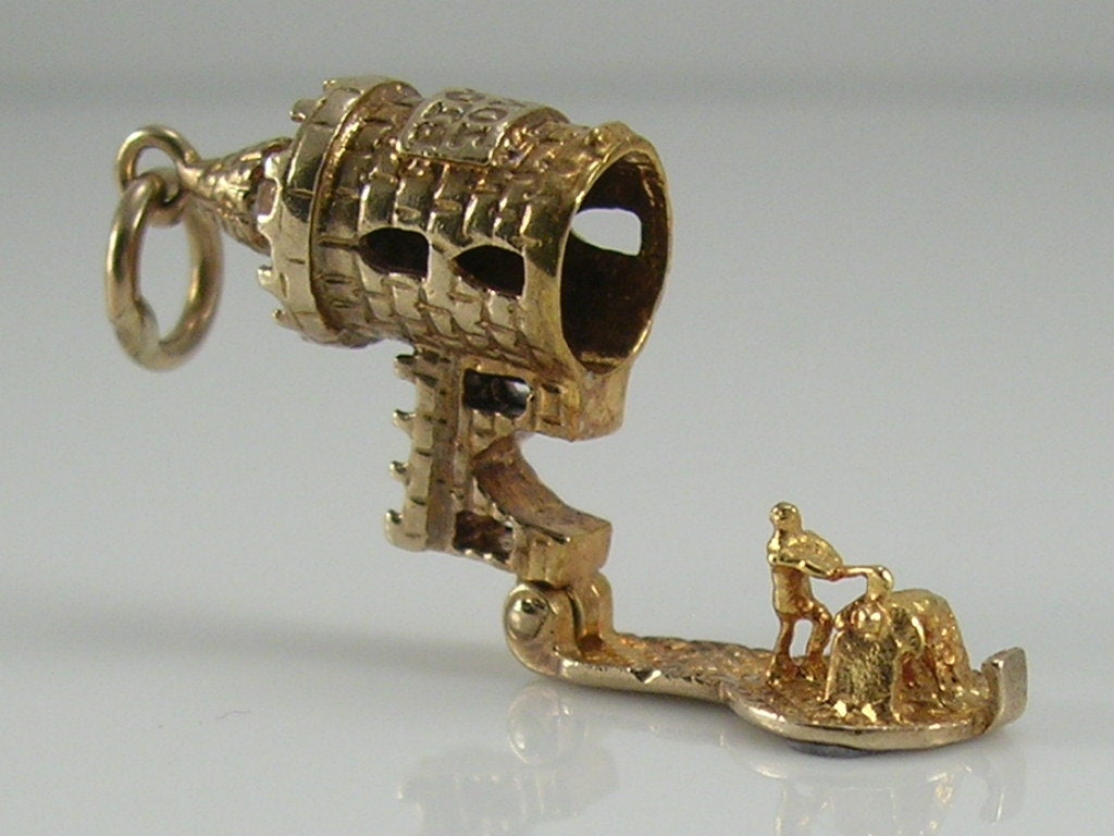 Vintage 3D 9ct gold London Bloody Tower charm...opens to executioner and chopping block
