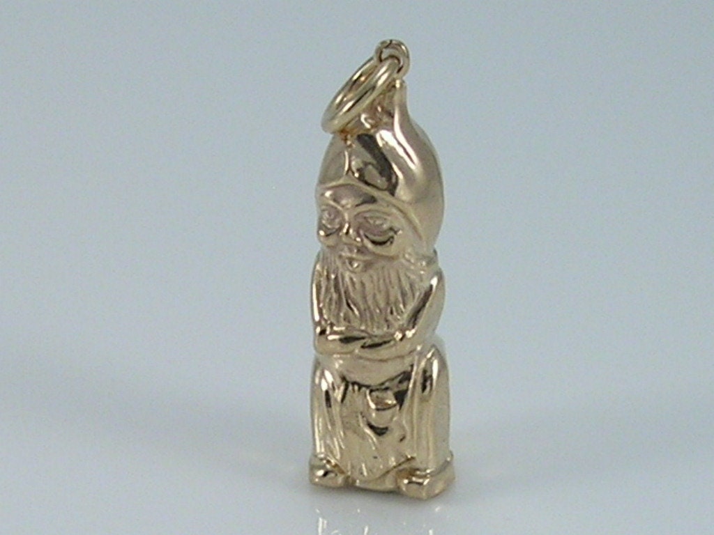 Vintage 3D 9ct Gold Lucky Gnome Leprechaun Charm Pendant H/MK 1974