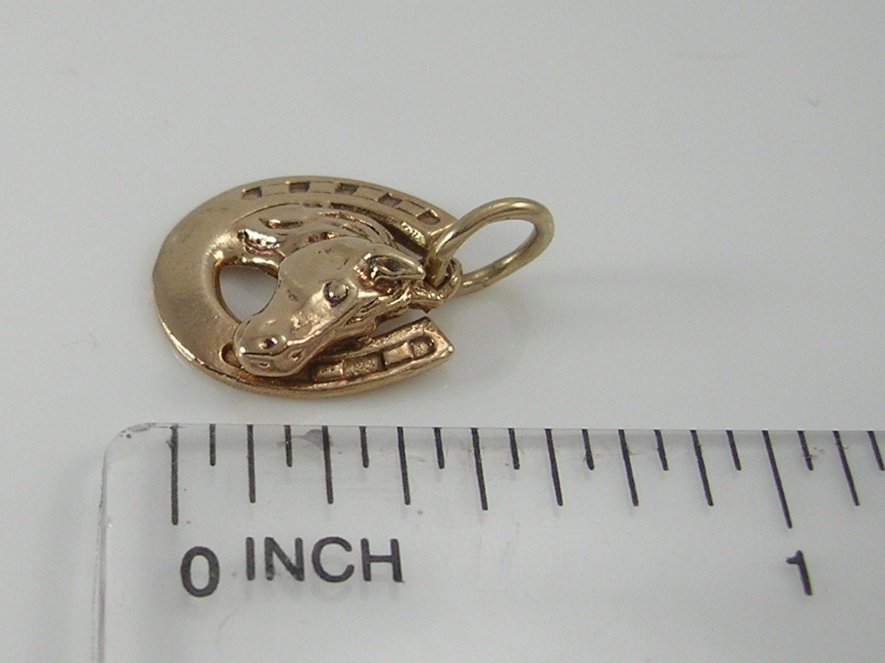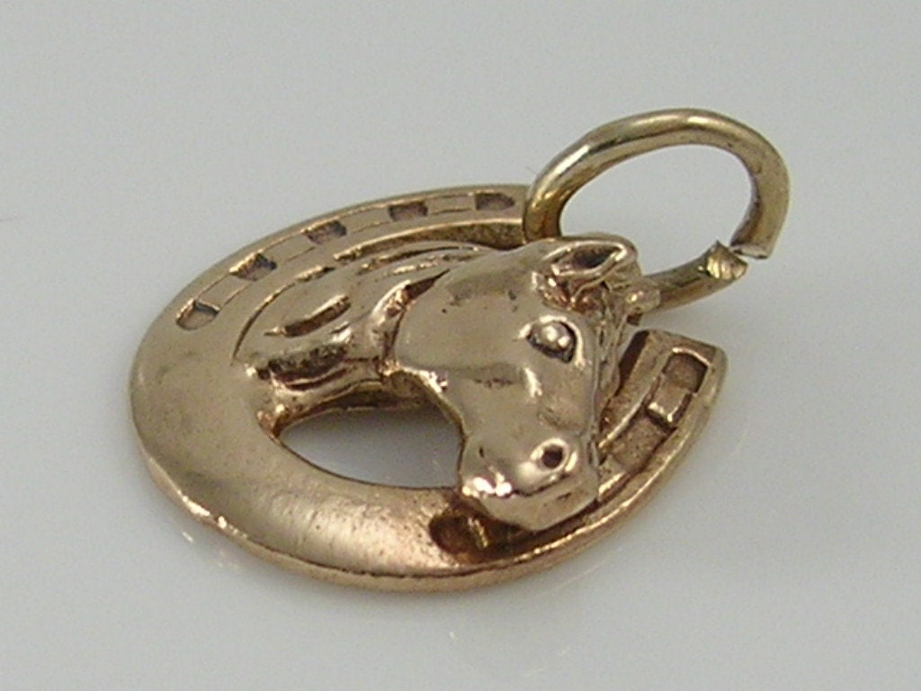 Vintage 3D 9ct gold lucky horseshoe horse head charm pendant