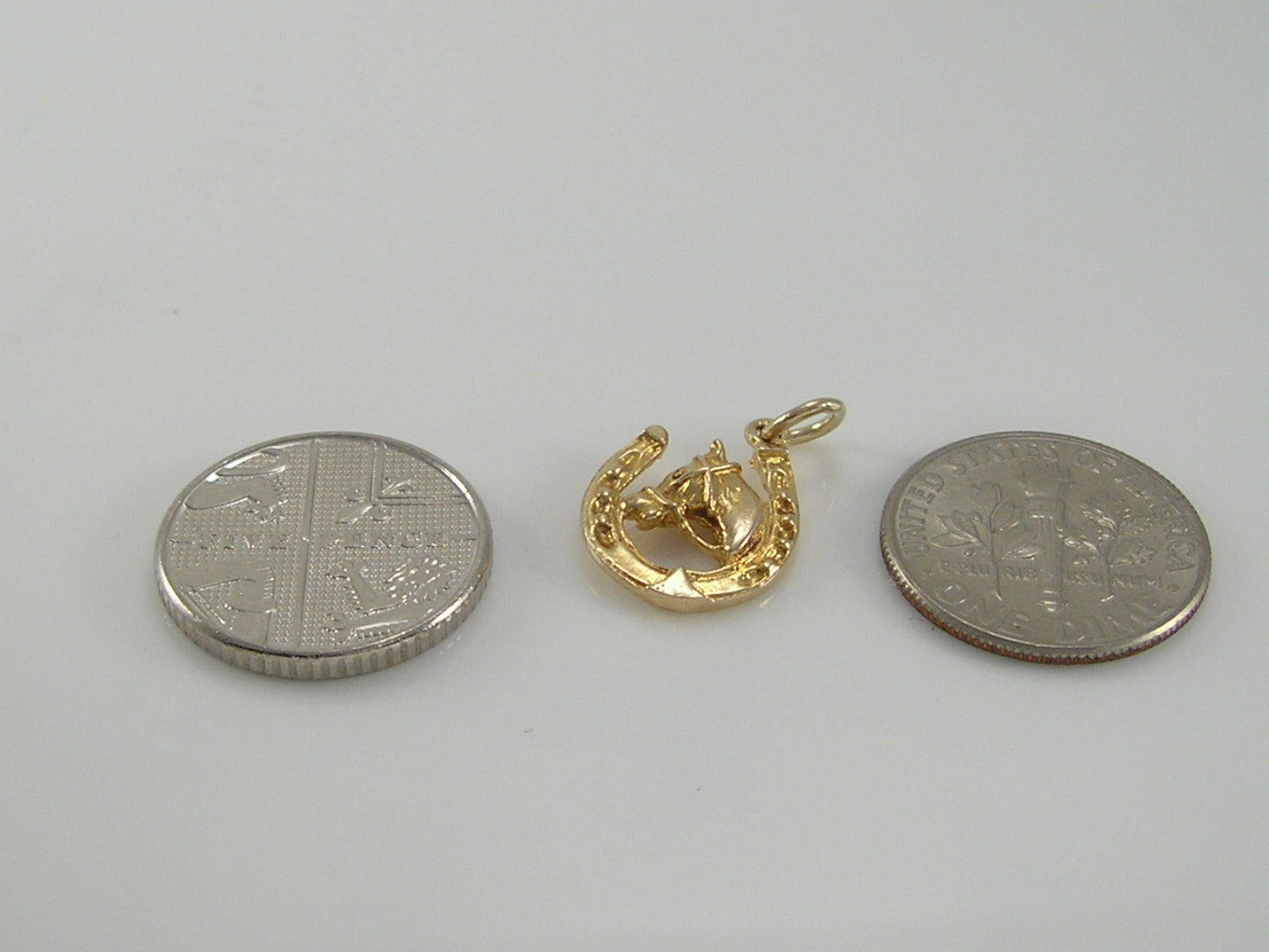 Vintage 3D 9ct gold lucky horseshoe horse head charm