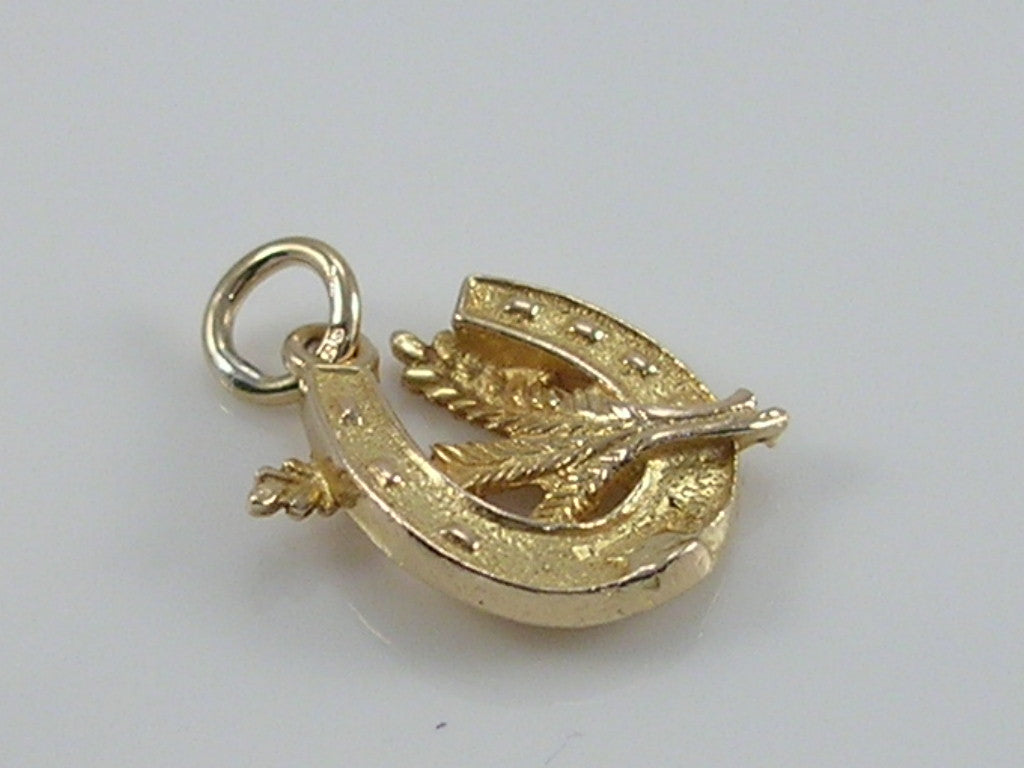 Vintage 3D 9ct Gold Lucky Horseshoe & Lucky Heather Charm Pendant H/MK 1965