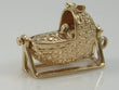 Vintage 3D 9ct Gold Movable Baby In Basket Crib Charm H/MK