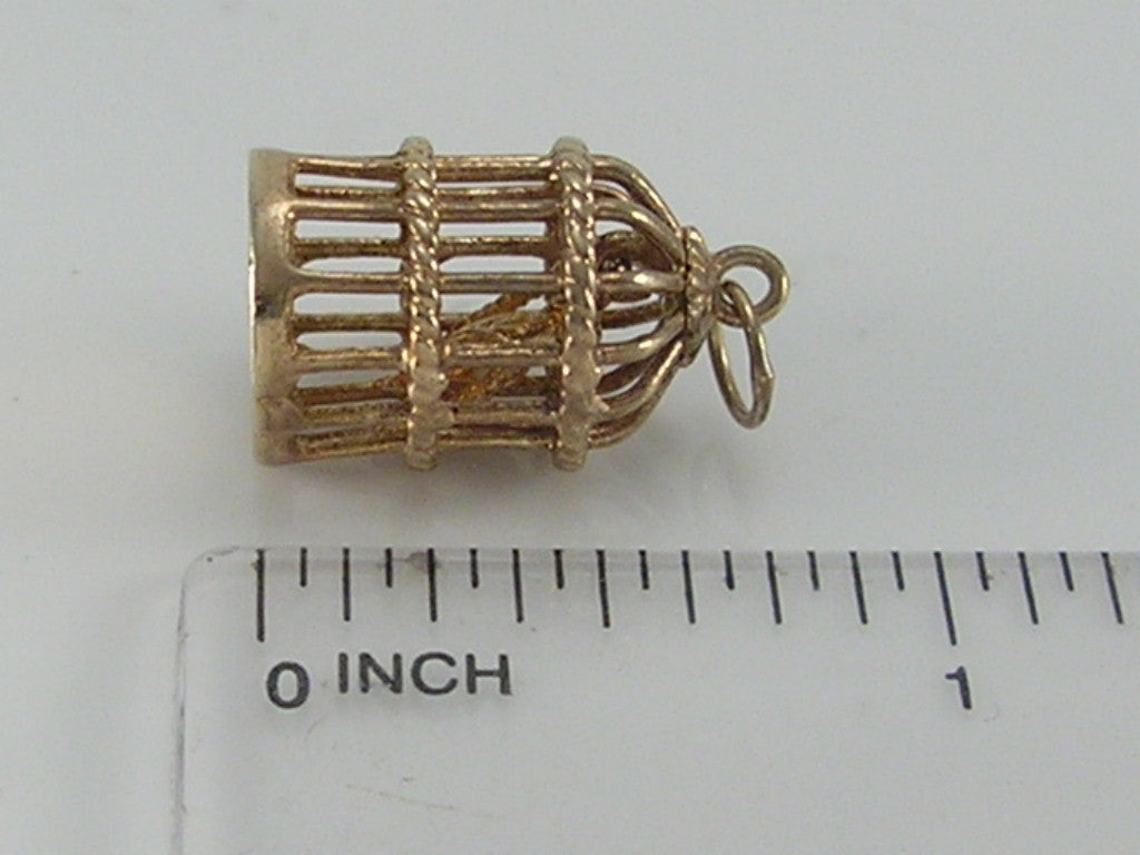 Vintage 3D 9ct Gold Movable Bird in Bird Cage Charm H/MK 1966