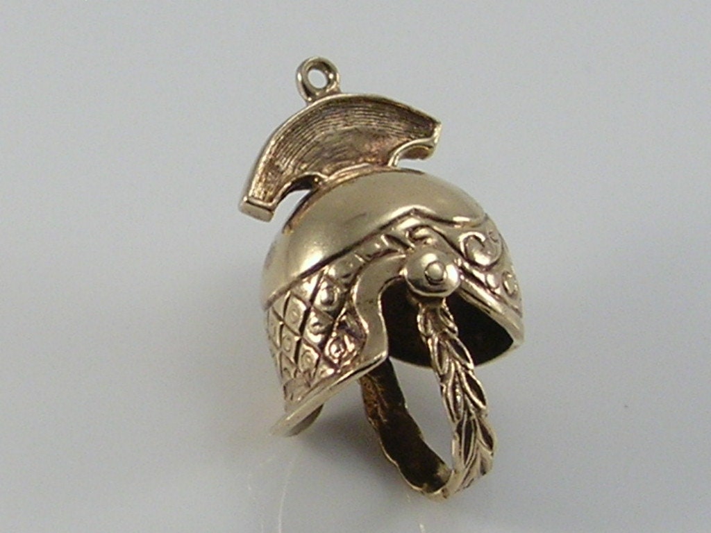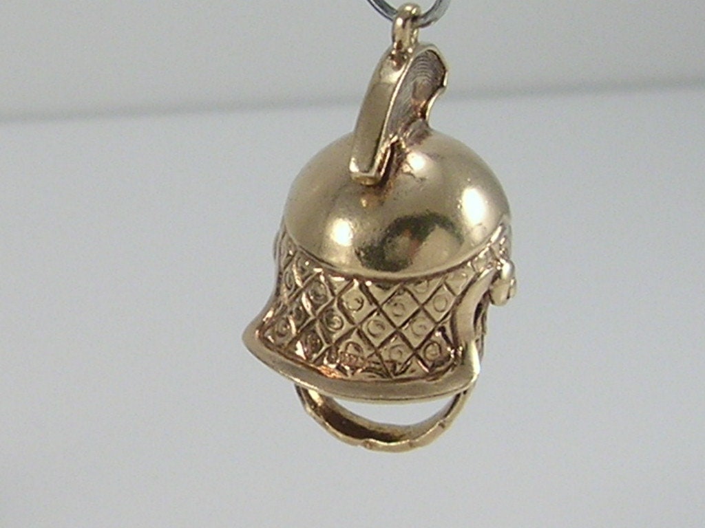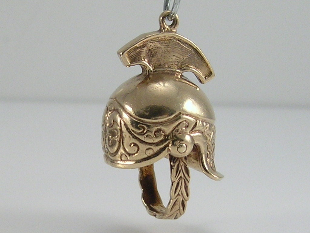 Vintage 3D 9ct gold centurion Roman helmet charm pendant...movable under chin strap