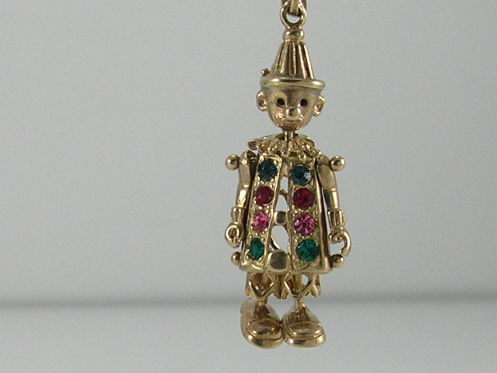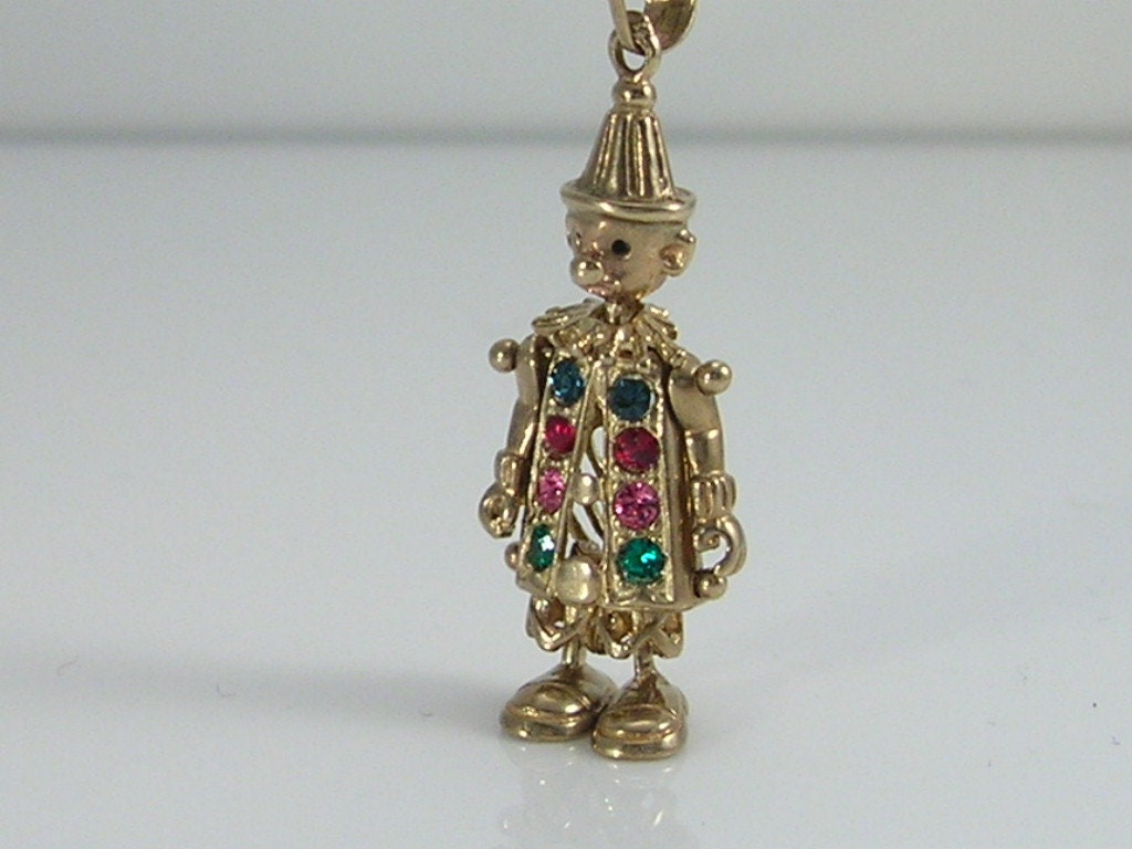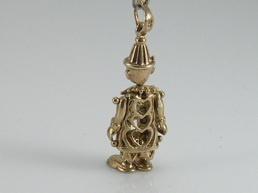 Vintage 3D 9ct gold clown charm pendant...movable head, feet and arms