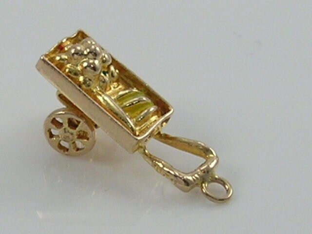 Vintage 3D smaller size 9ct gold fruit and vegetables barrow charm pendant