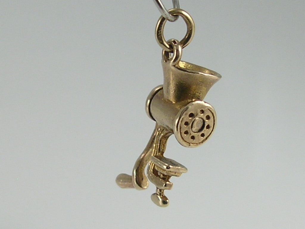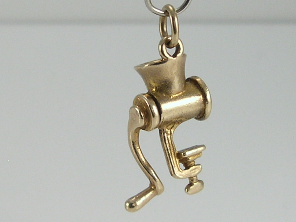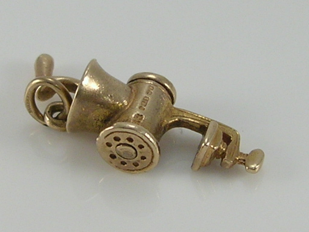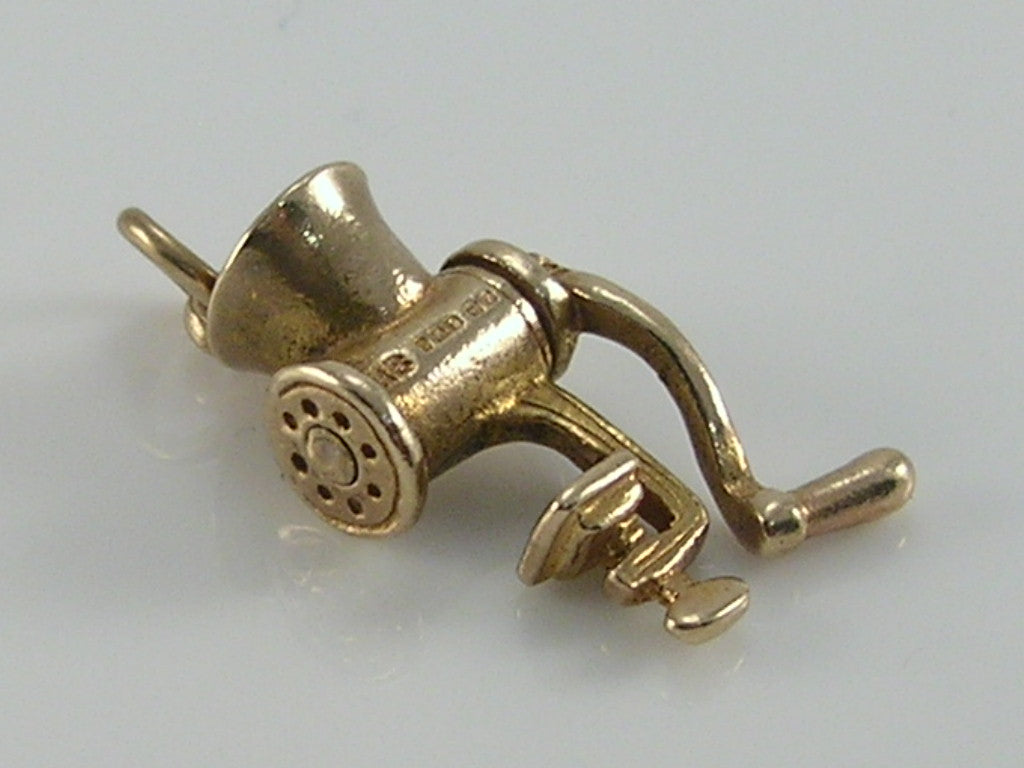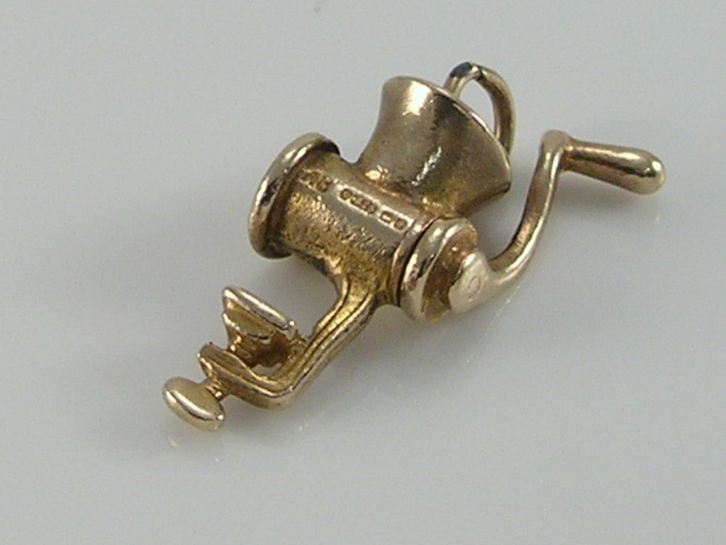 Vintage 3D 9ct Gold Movable Meat Mincer Grinder Charm H/MK 1958