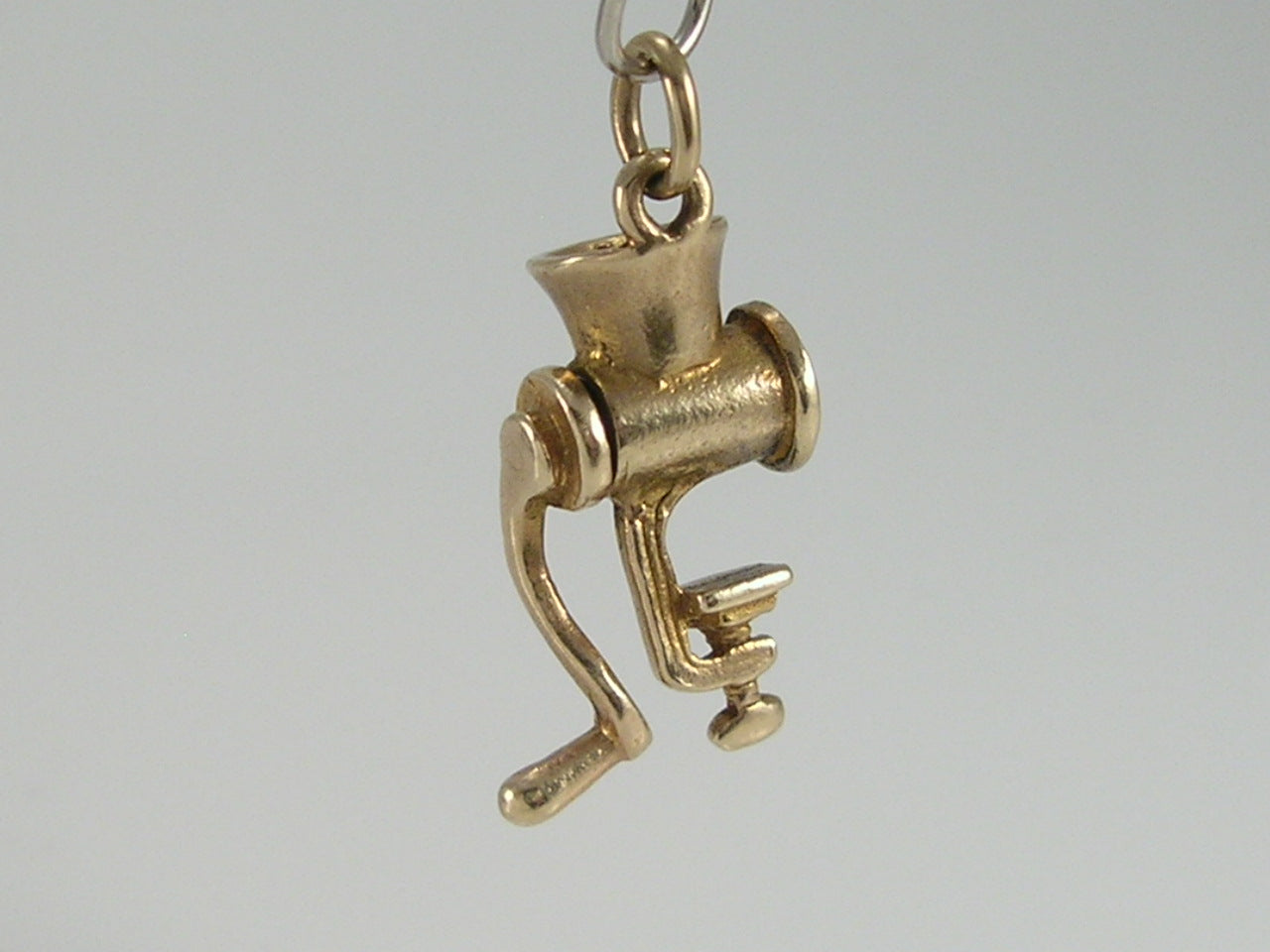 Vintage 3D 9ct gold mechanical meat mincer grinder charm....movable handle turns...lovely collectable charm for those that like to cook