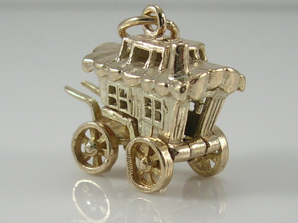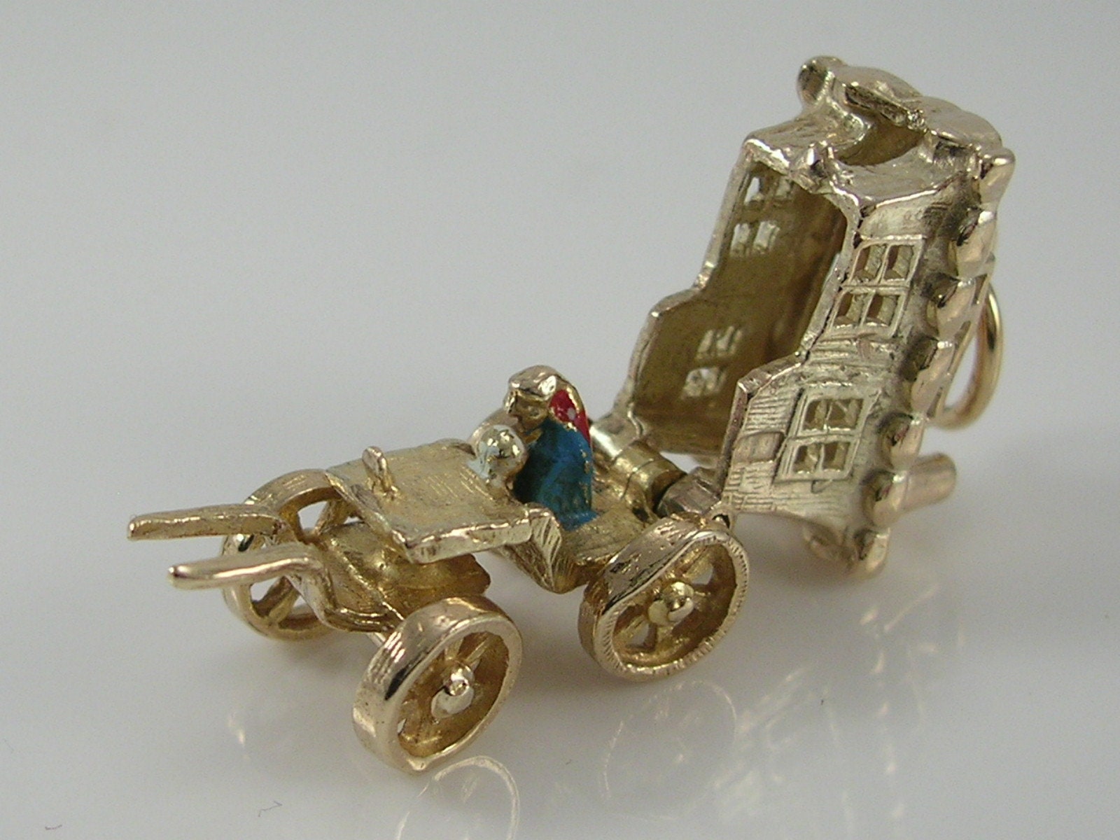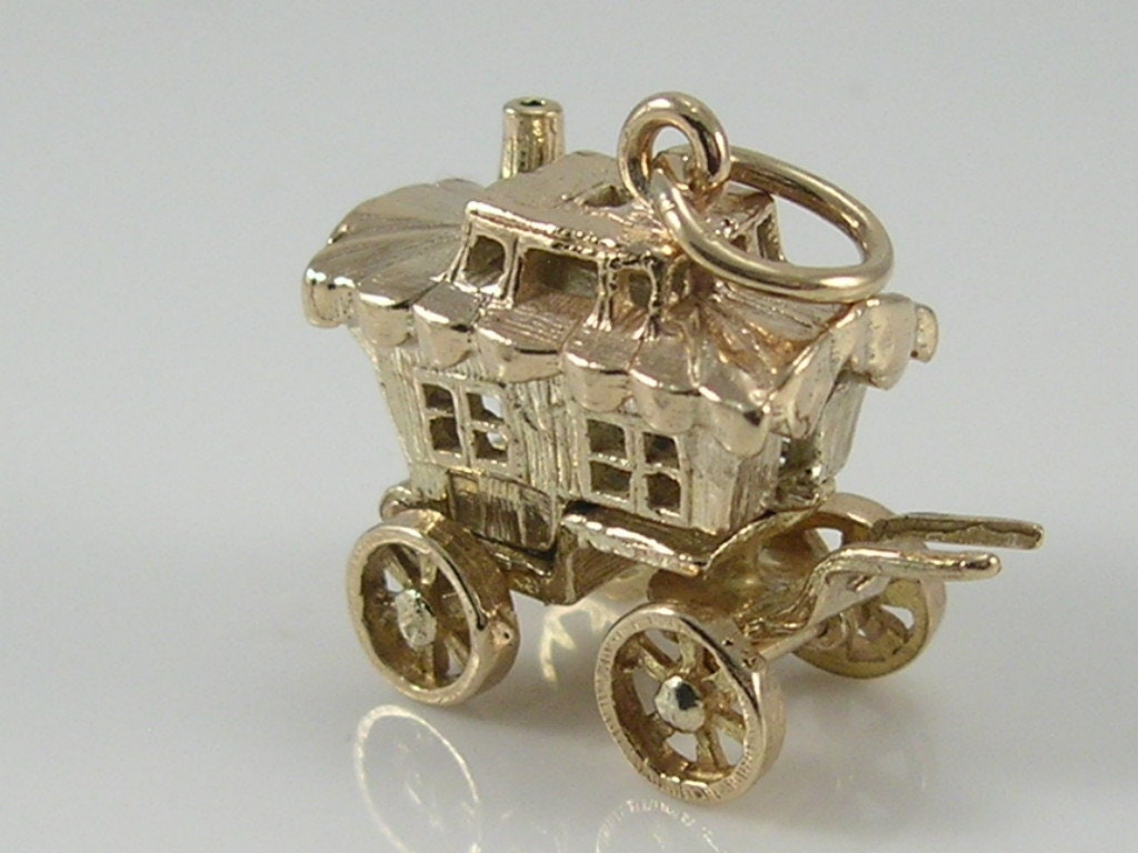 Vintage 3D 9ct Gold Movable Romany Gypsy Caravan Charm H/MK 1967 GJLd