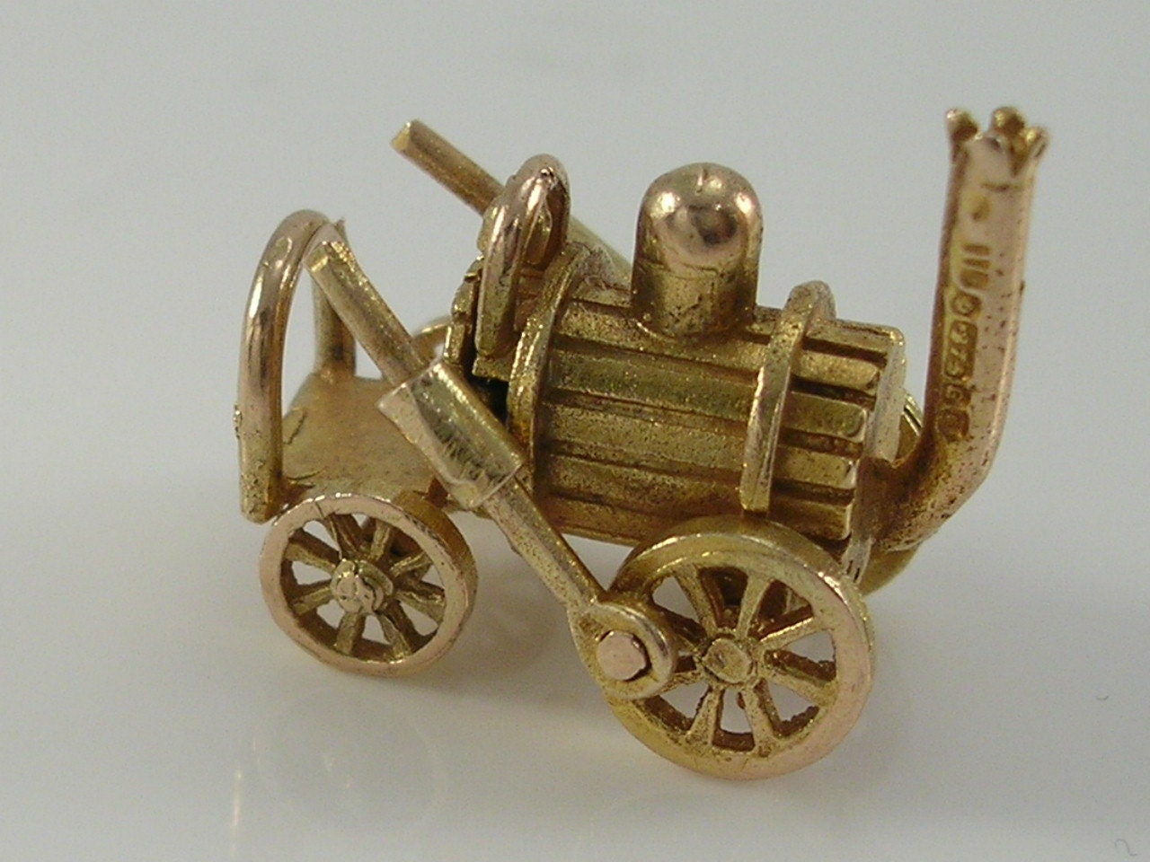 Vintage 3D 9ct Gold Movable Stephenson's Rocket Steam Engine Charm Pendant H/MK 1960