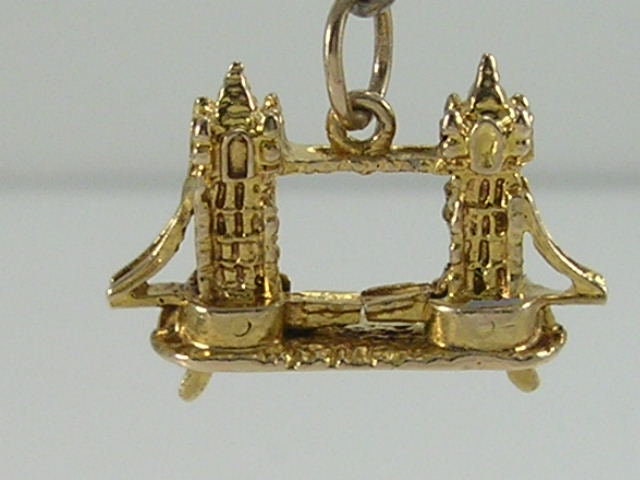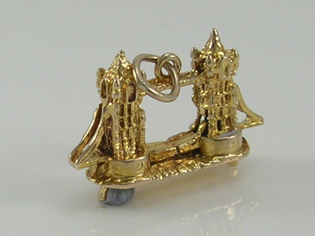Vintage 3D 9ct gold Tower Bridge of London charm Pendant...movable, little levers under the bridge when moved move the upper platform