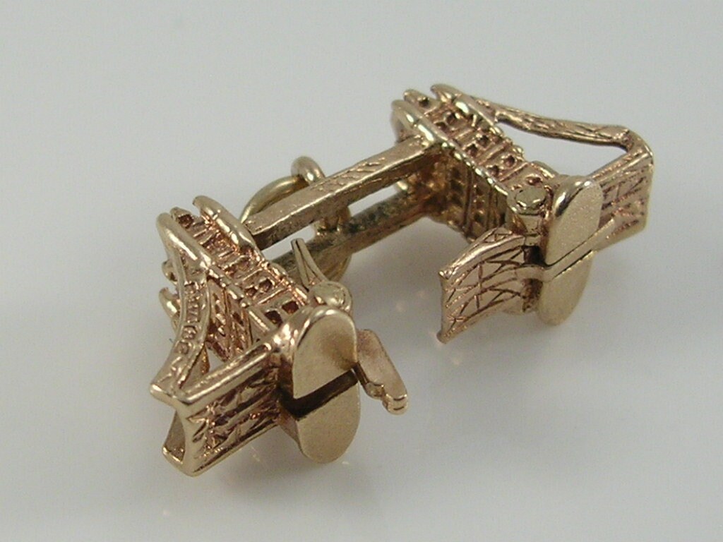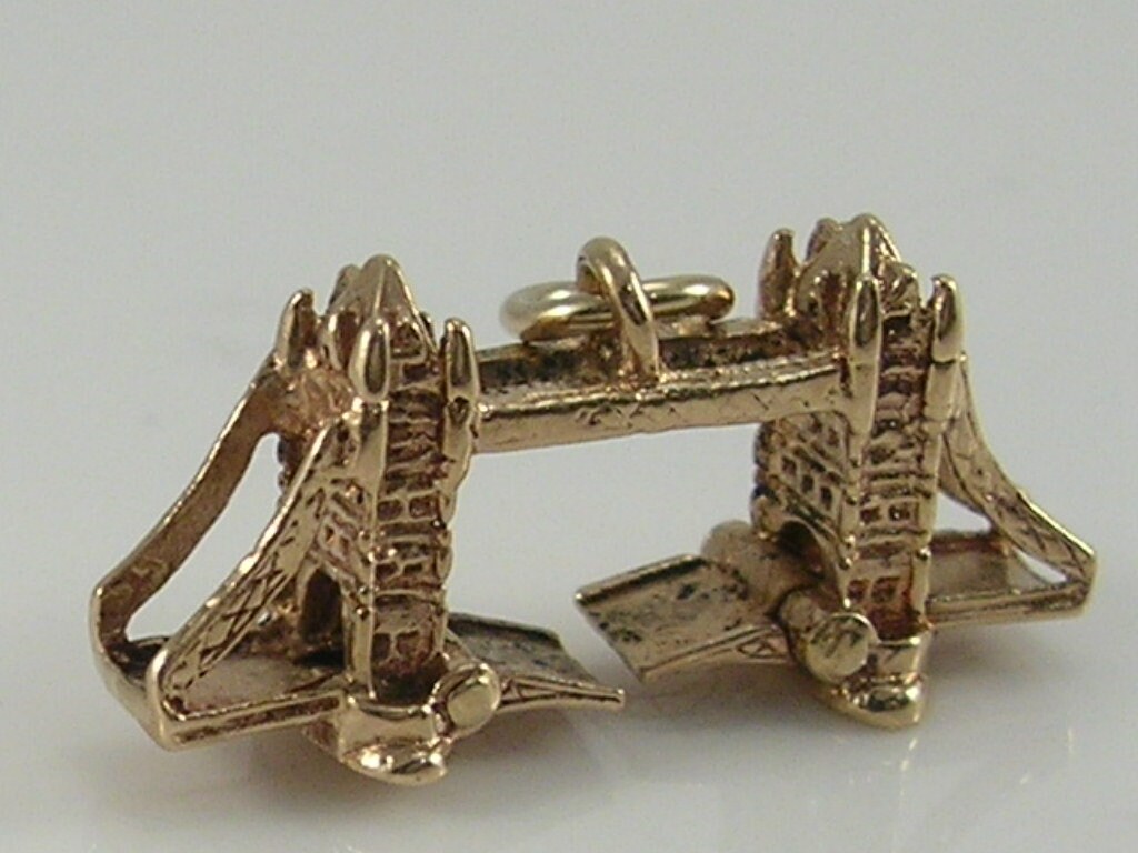 Vintage 3D 9ct gold Tower Bridge of London charm Pendant...movable, little levers under the bridge when moved move the upper platform