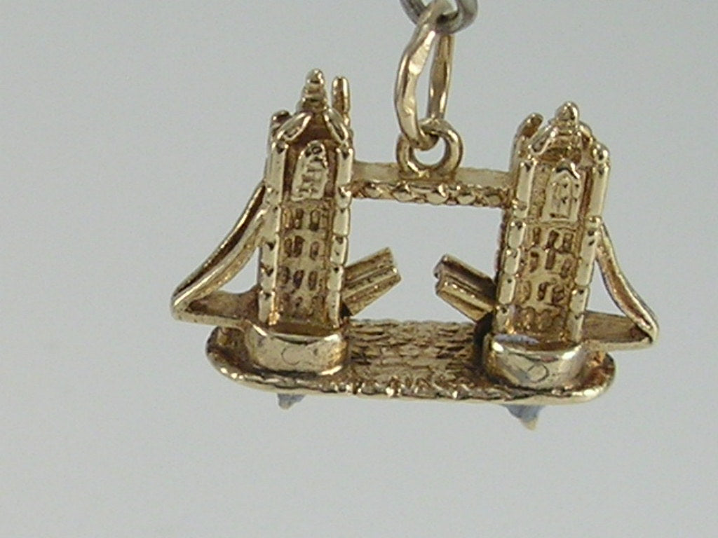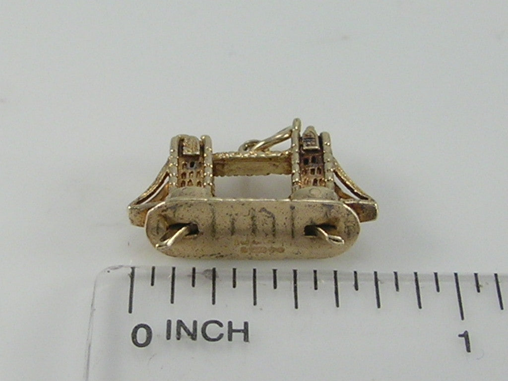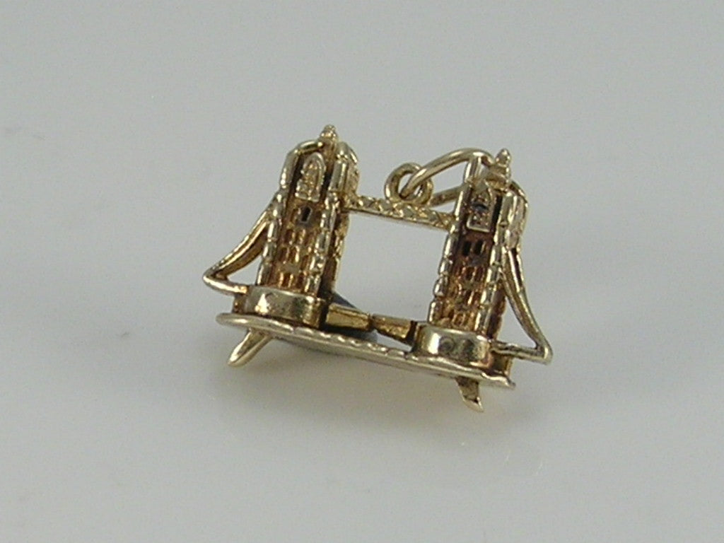 Vintage 3D 9ct gold Tower Bridge of London charm Pendant...movable, little levers under the bridge when moved move the upper platforms