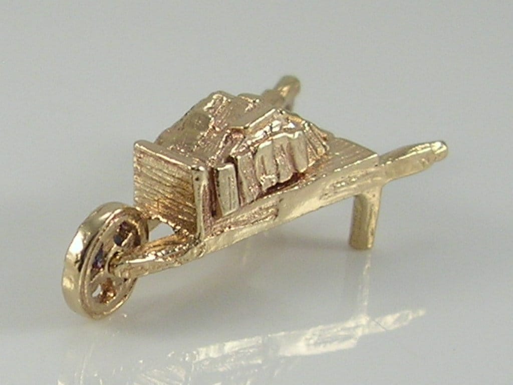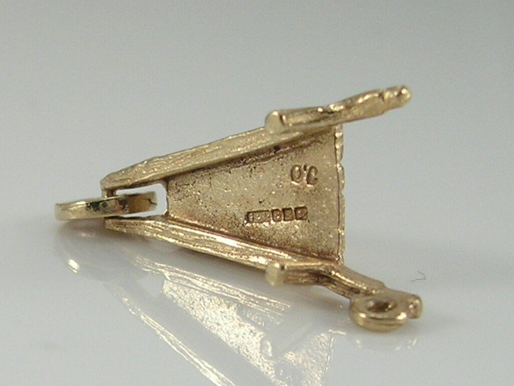 Vintage 3D 9ct Gold Movable Wheel Barrow Charm Pendant H/MK 1966