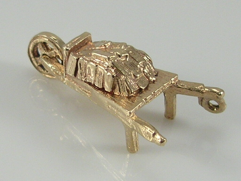 Vintage 3D 9ct gold wheel wheel barrow charm pendant