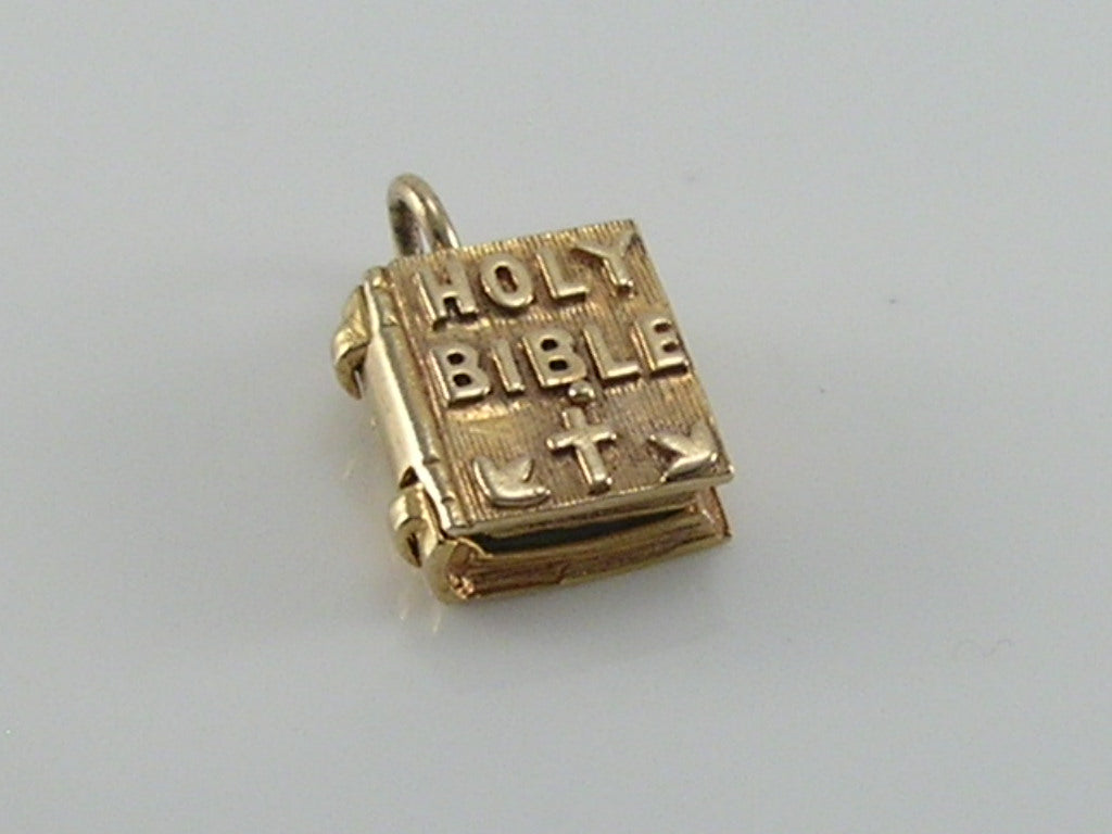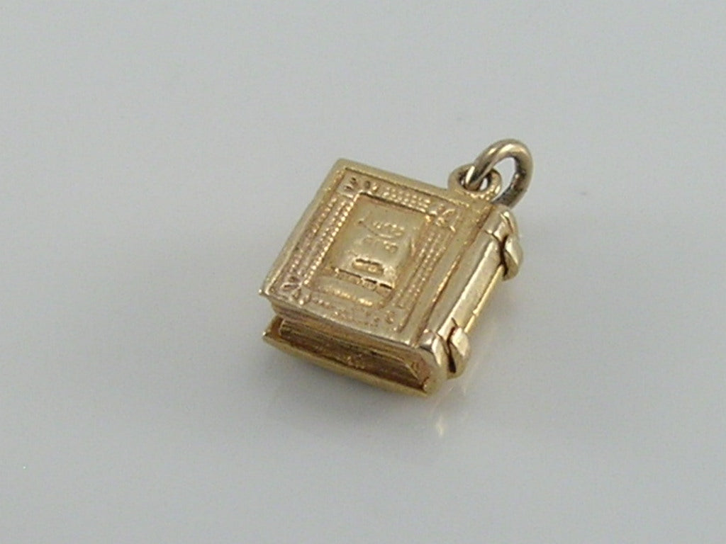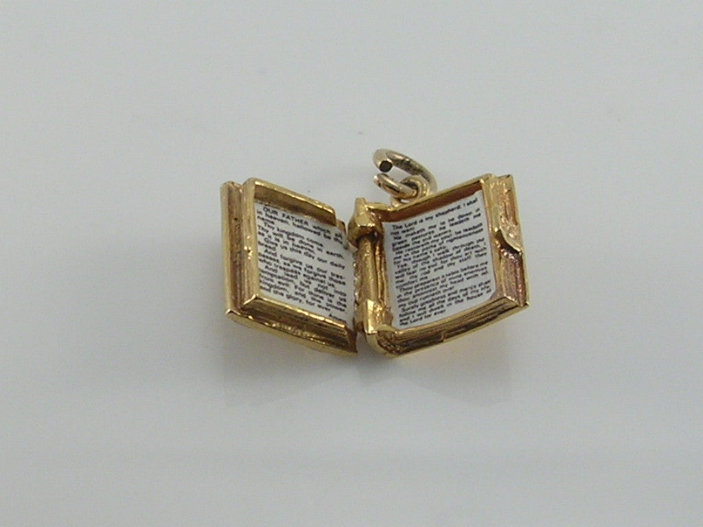 Vintage 3D 9ct gold Nuvo Holy Bible charm...opens Lords Prayer & the Lord is my shepherd