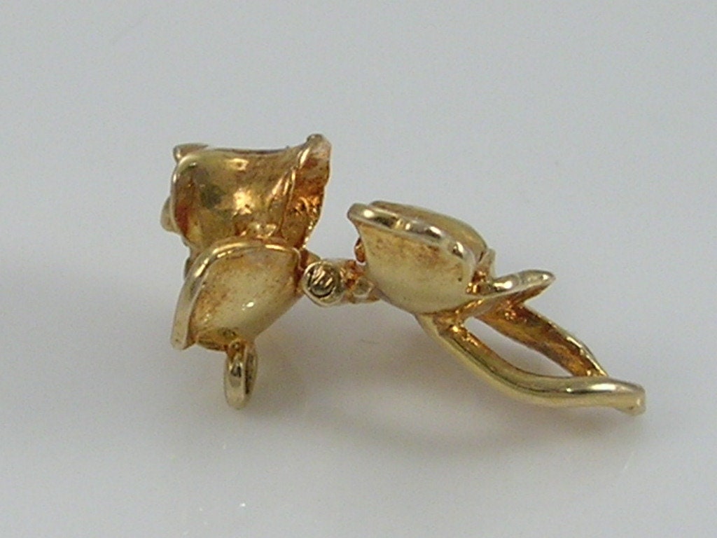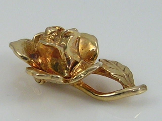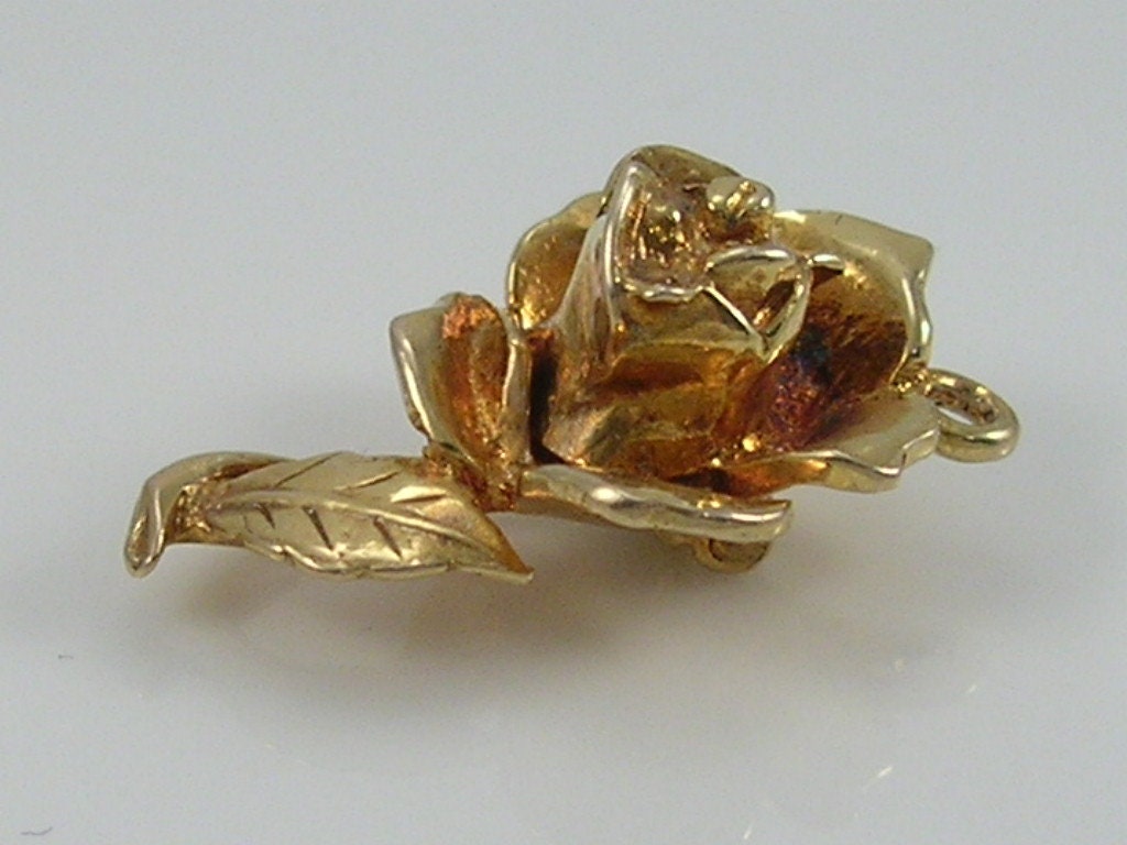 Vintage 3D 9ct gold Nuvo rose flower...opens to reveal a bumble bee