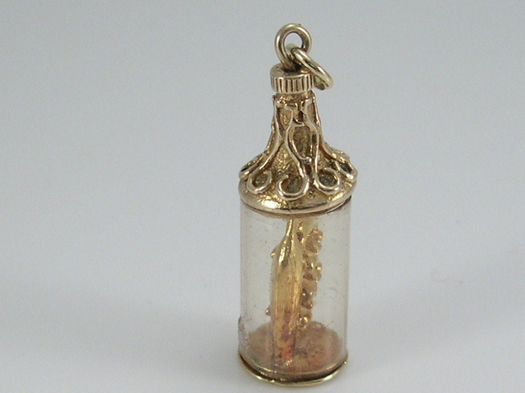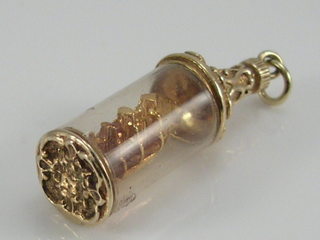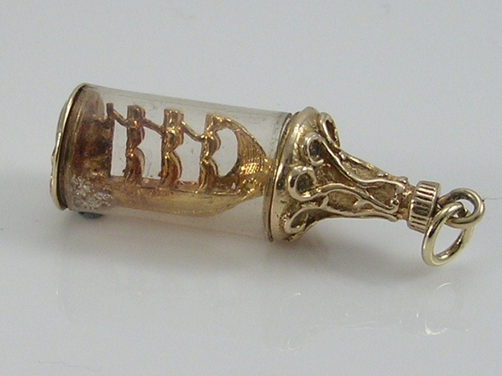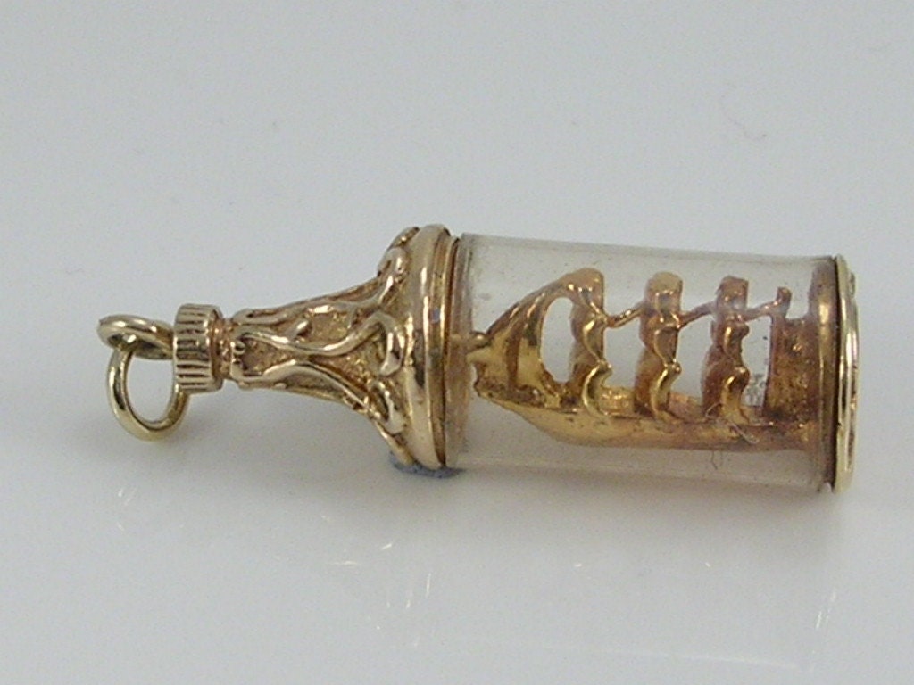 Vintage 3D 9ct gold Nuvo ship in a bottle charm pendant