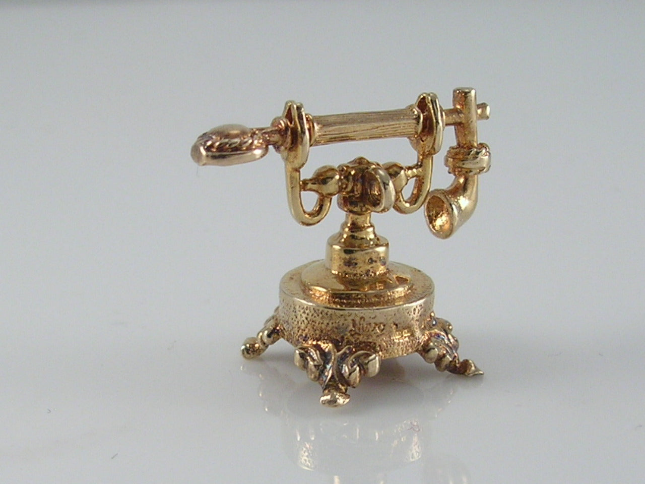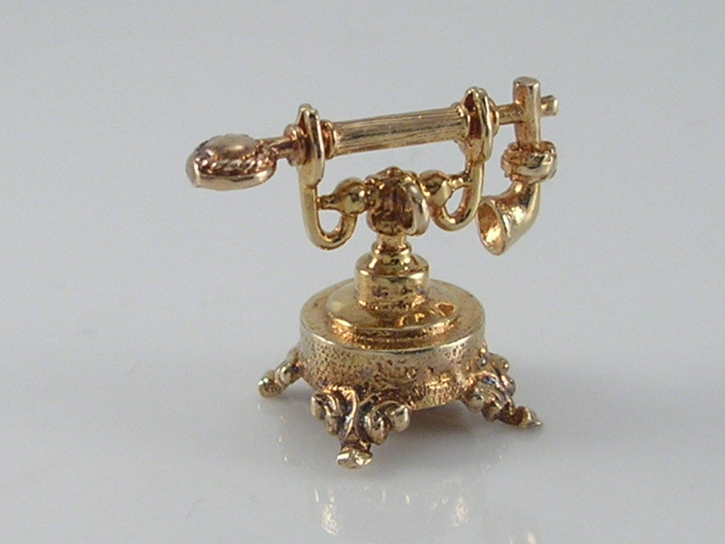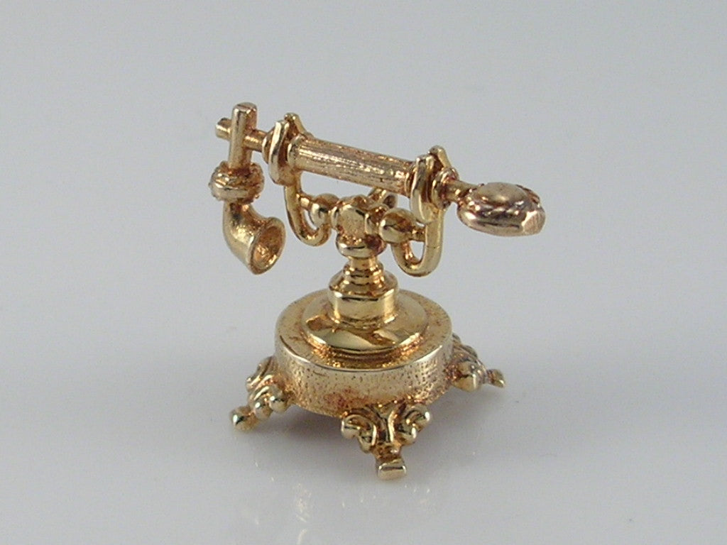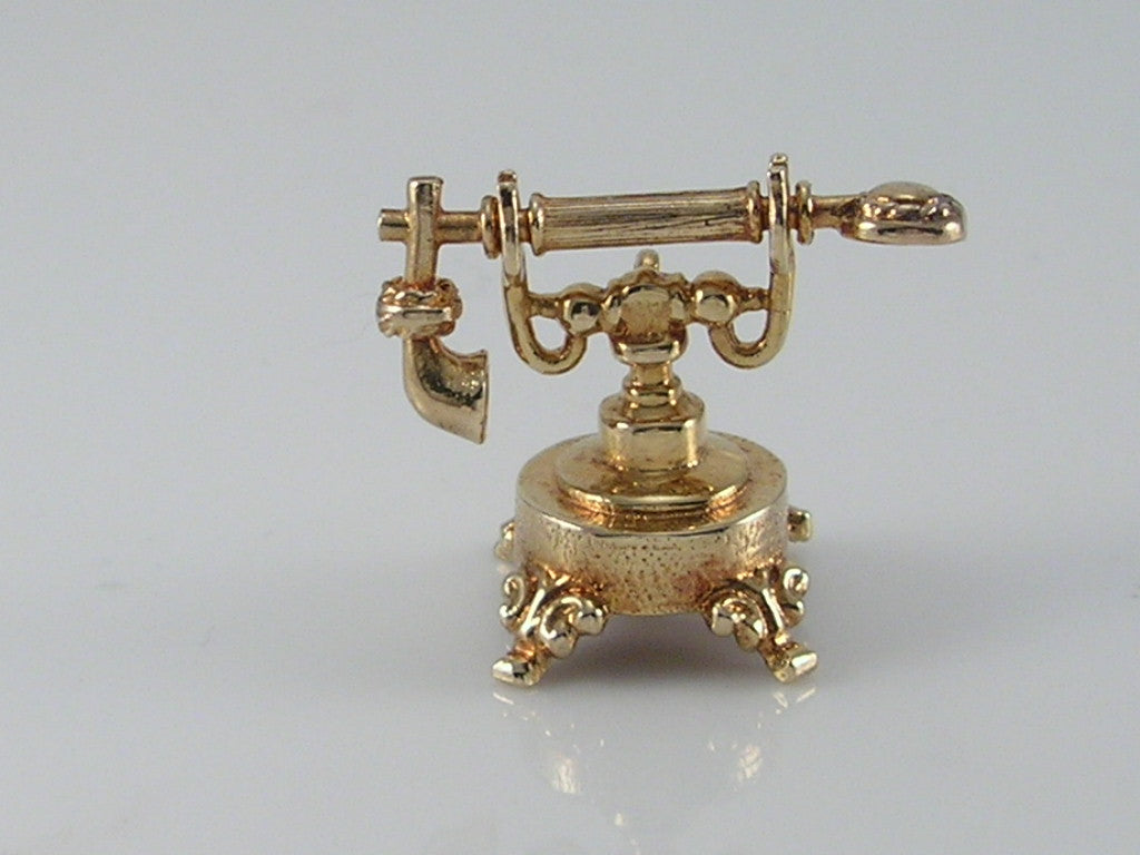 Vintage 3D 9ct gold Nuvo telephone charm...movable hand piece of the telephone turns