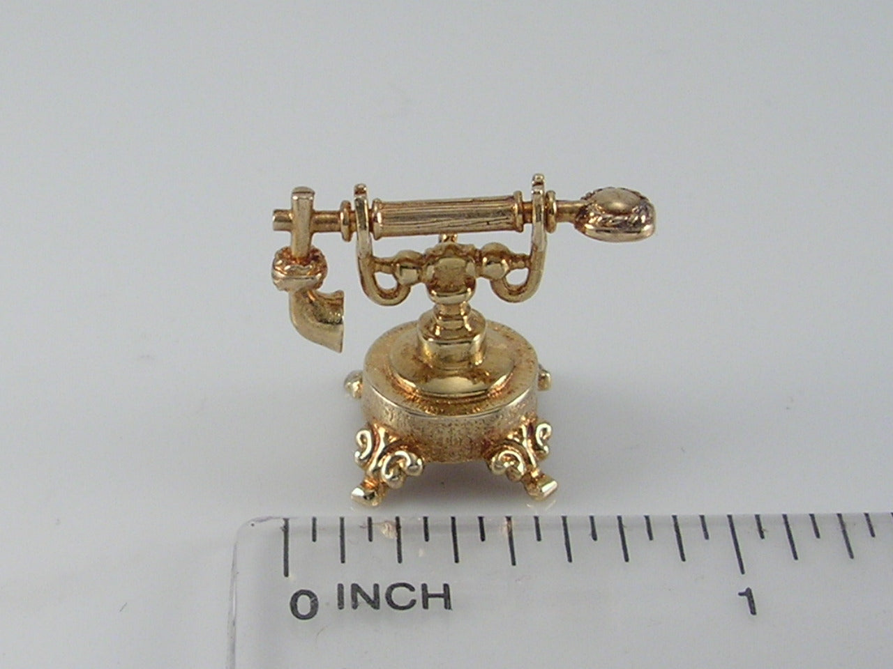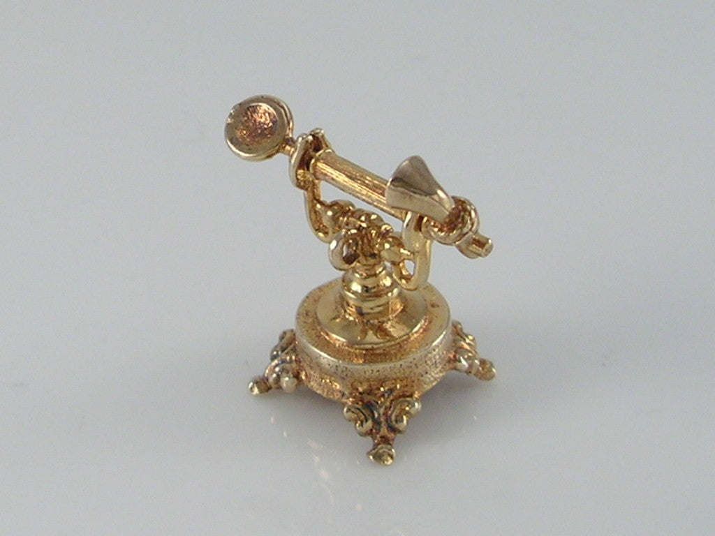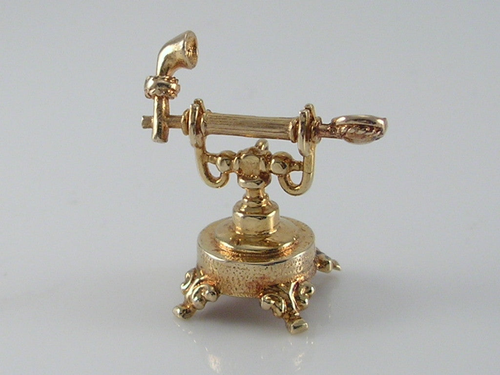 Vintage 3D 9ct gold Nuvo telephone charm...movable hand piece of the telephone turns