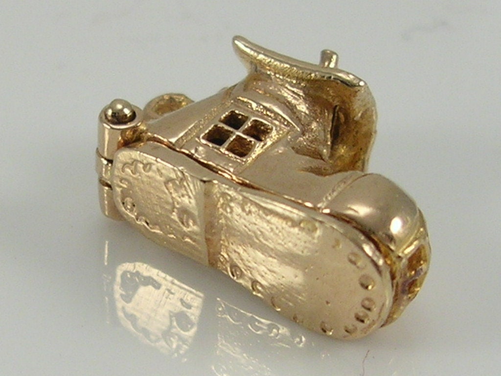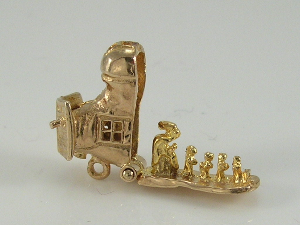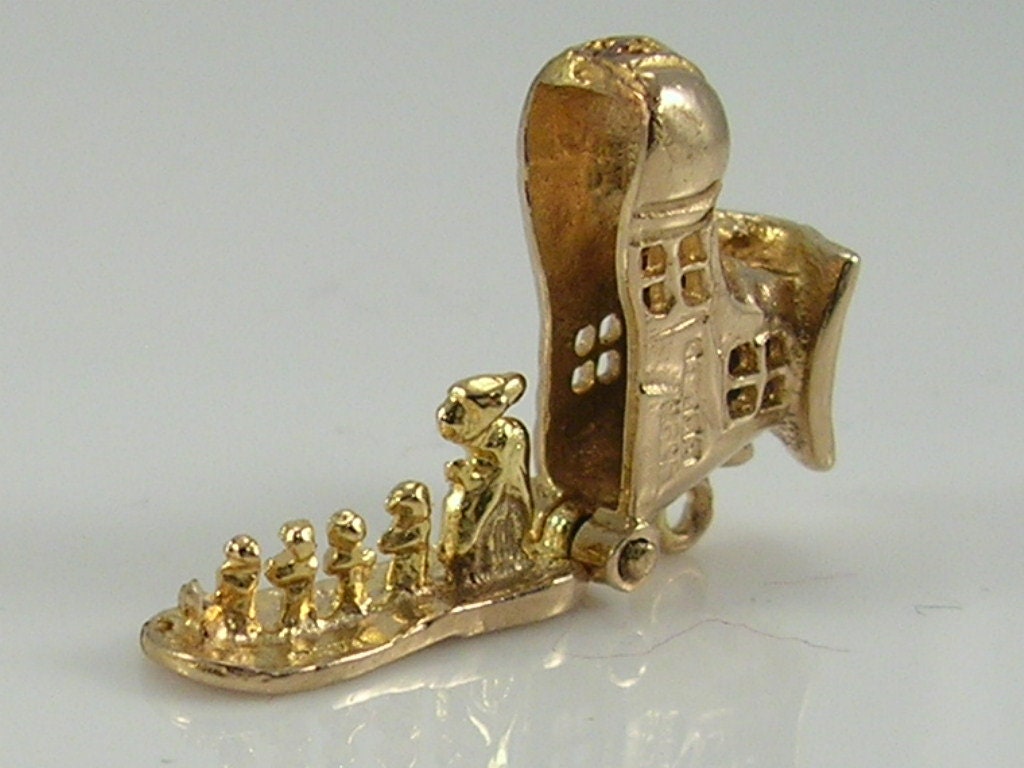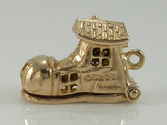 Vintage 3D 9ct gold old woman in shoe charm...opens to reveal old woman and her children