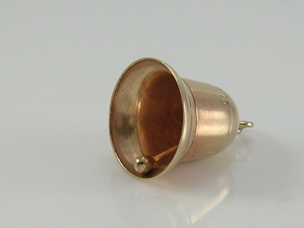 Vintage 3D 9ct gold bell charm pendant...movable clapper inside the bell, makes a slight tinkly noise when shaken