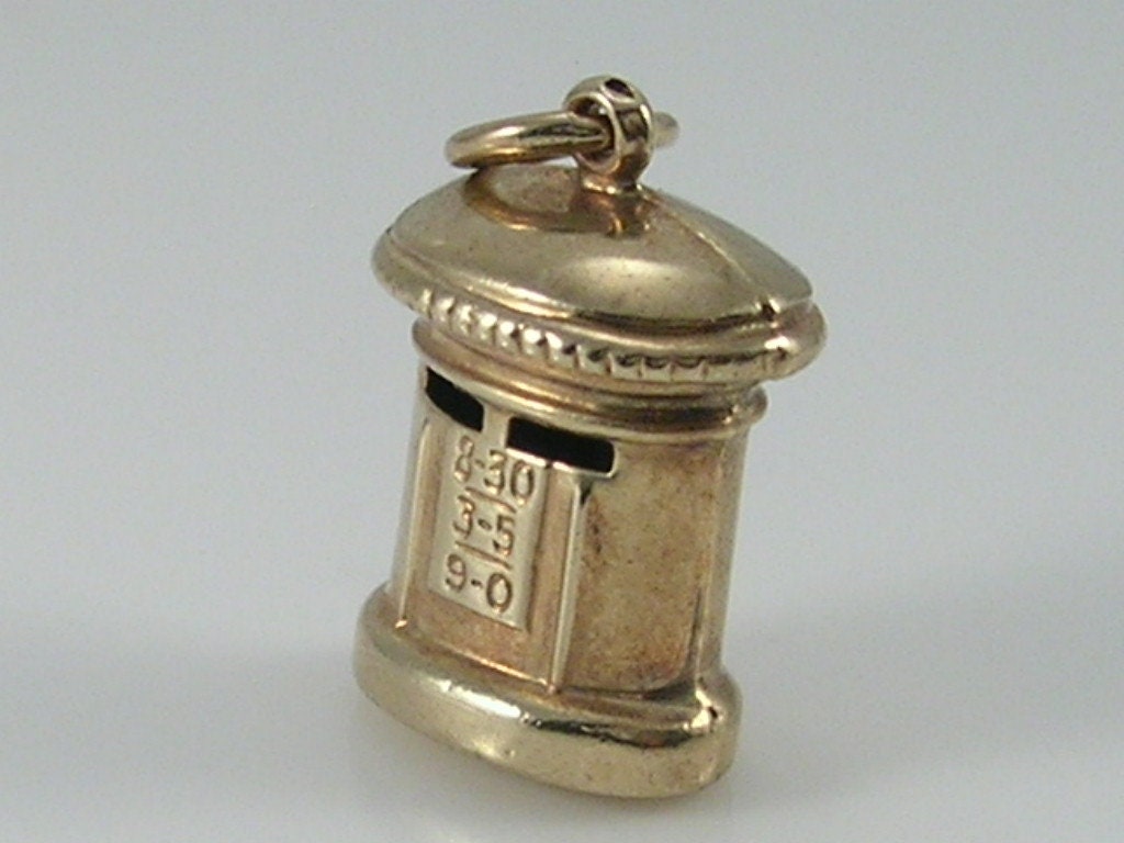 Vintage 3D 9ct gold post box charm pendant