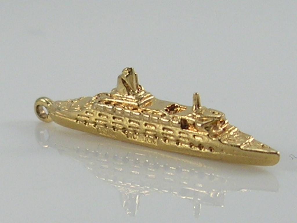 Vintage 3D 9ct gold Queen Elizabeth II cruise liner ship charm pendant