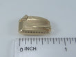 Measures approximately 11mm height excluding the little fixed ring by 18mm length (7/16th's of an inch by 11/16th's of an inch)