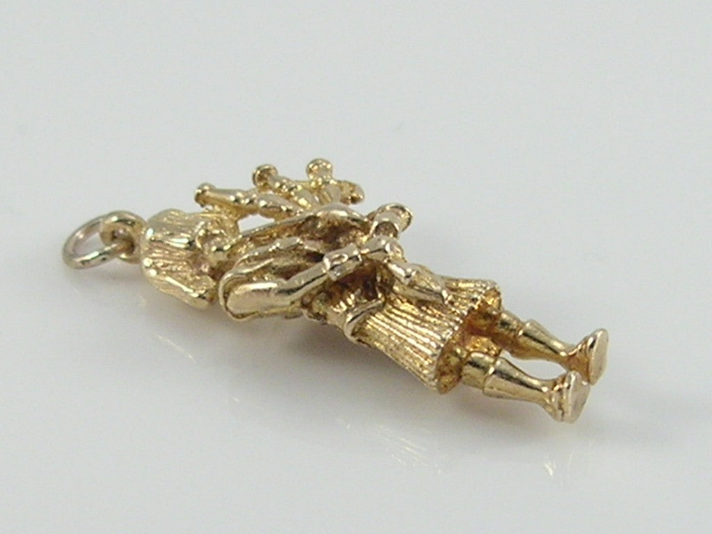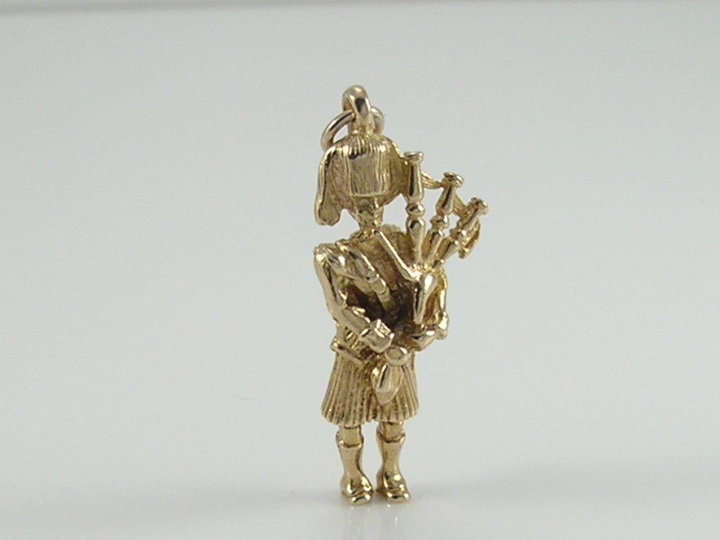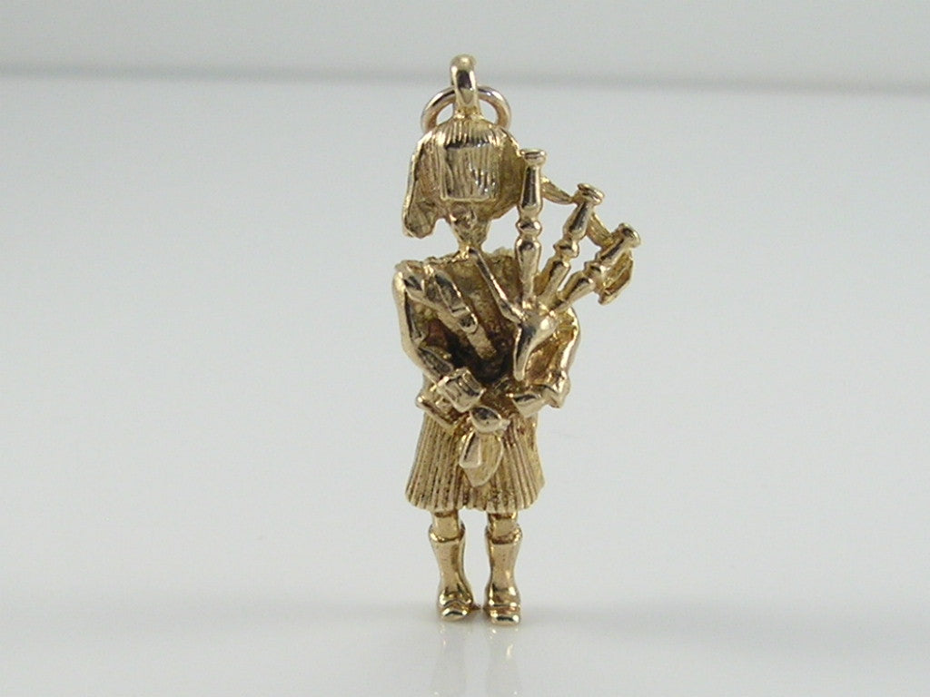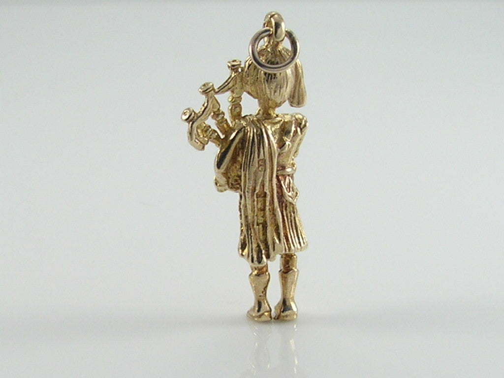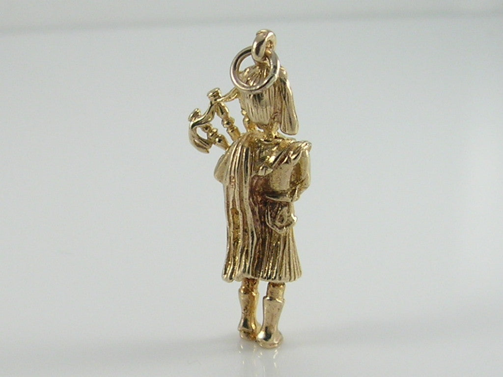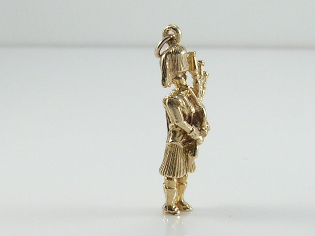 Vintage 3D 9ct gold Scottish bagpiper charm pendant