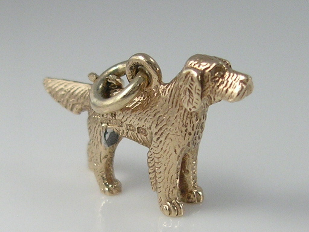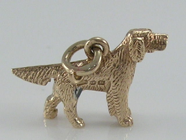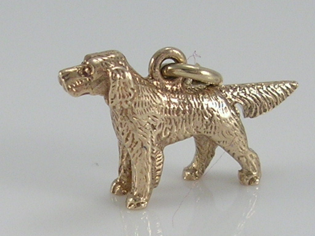 Vintage 3D 9ct Gold Setter Dog Charm Pendant H/MK 1957