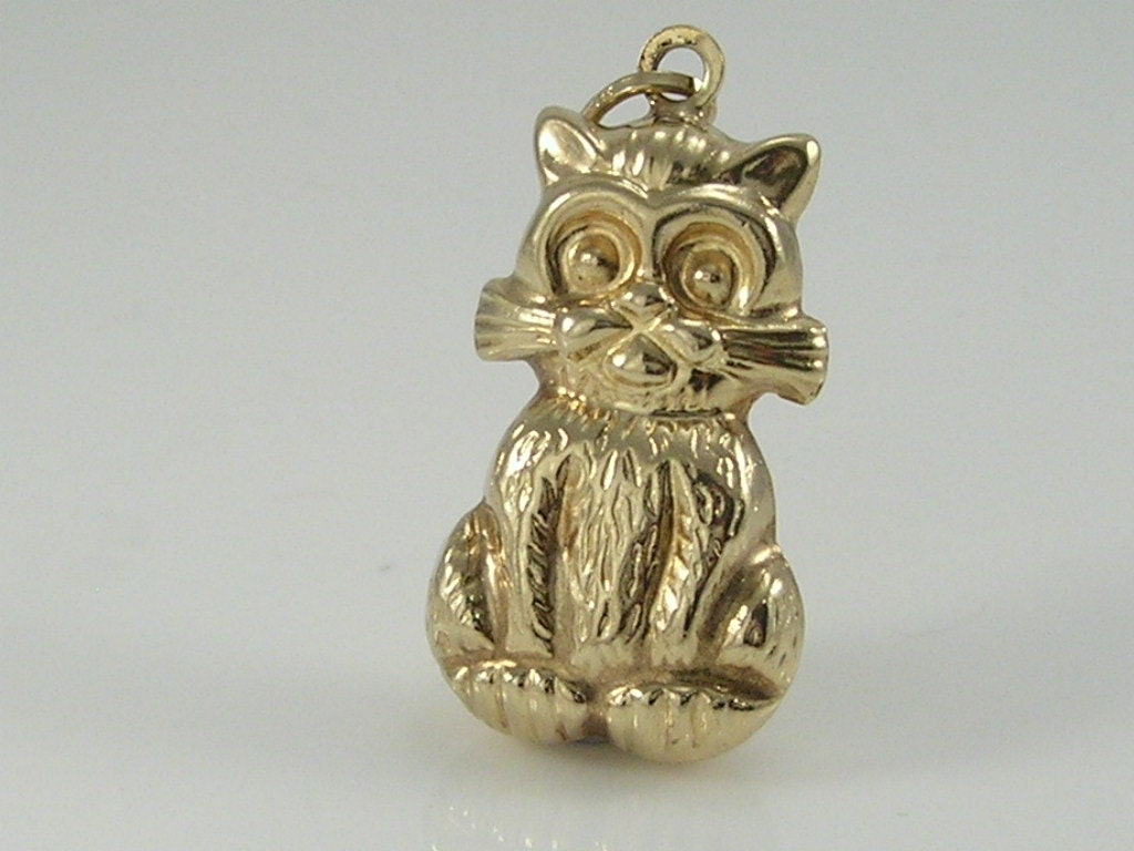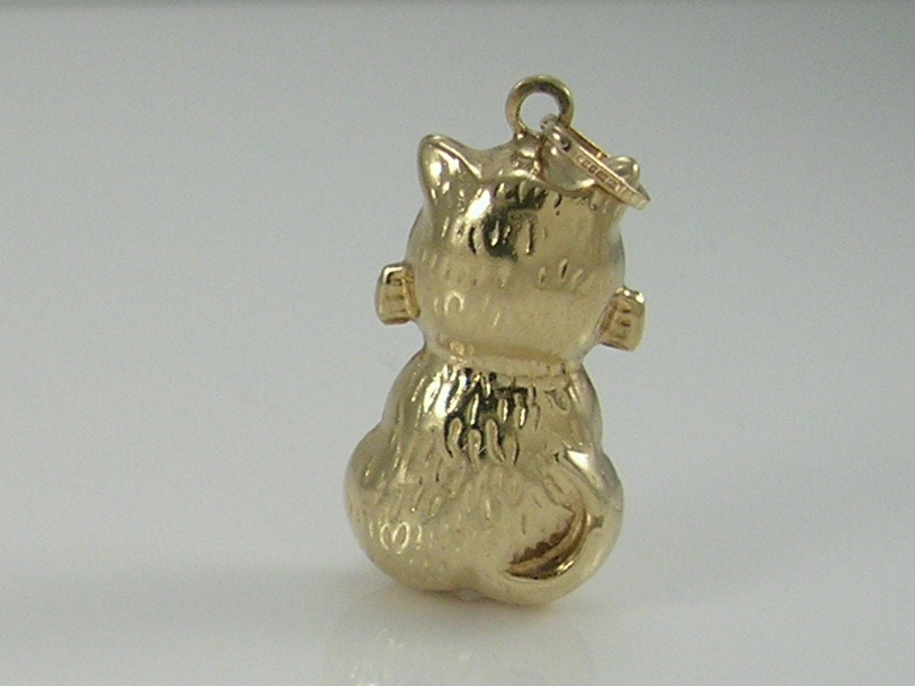 Vintage 3D 9ct Gold Sitting Cat Charm Pendant H/MK