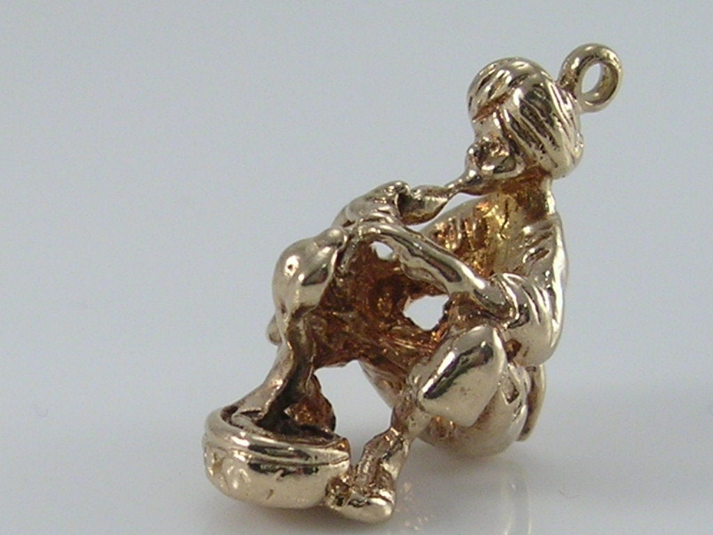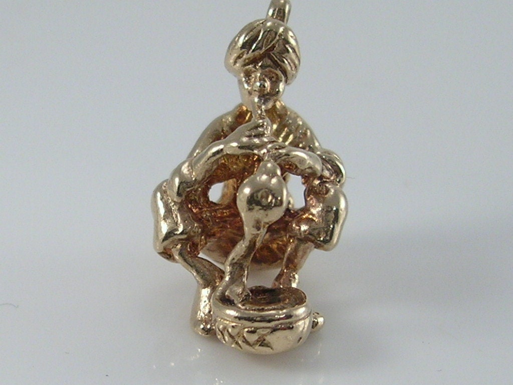 Vintage 3D 9ct Gold Snake Charmer Charm H/MK 1963