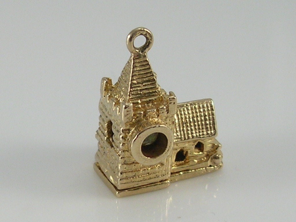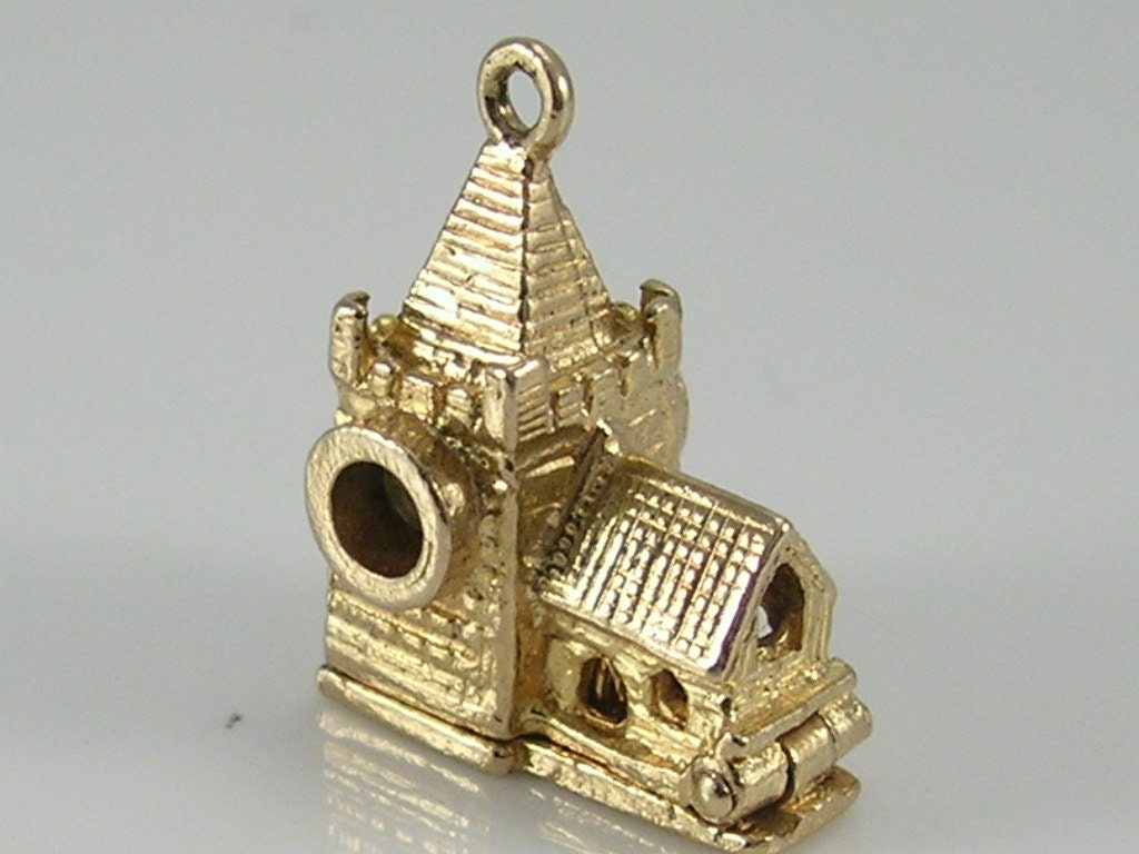 Vintage 3D 9ct Gold Stanhope Church Charm Pendant H/MK 1977
