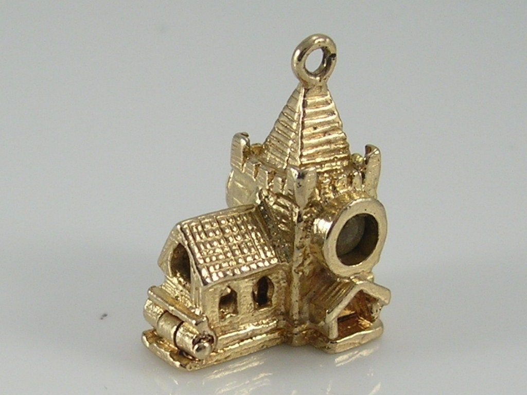 Vintage 3D 9ct gold Stanhope church charm...opens to reveal bride groom