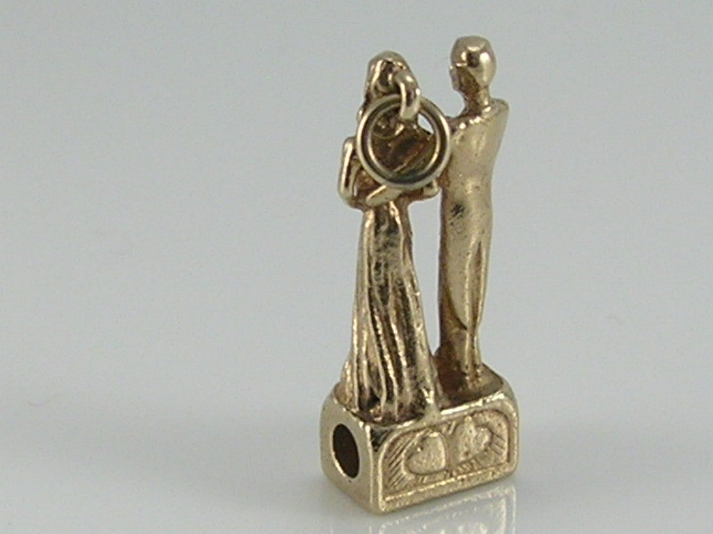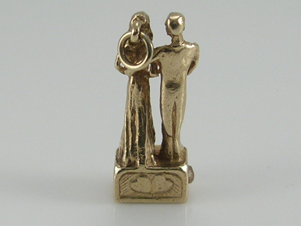 Vintage 3D 9ct gold marriage wedding vows charm...stanhope viewer is missing no text