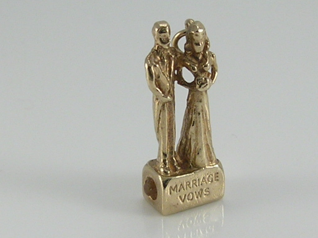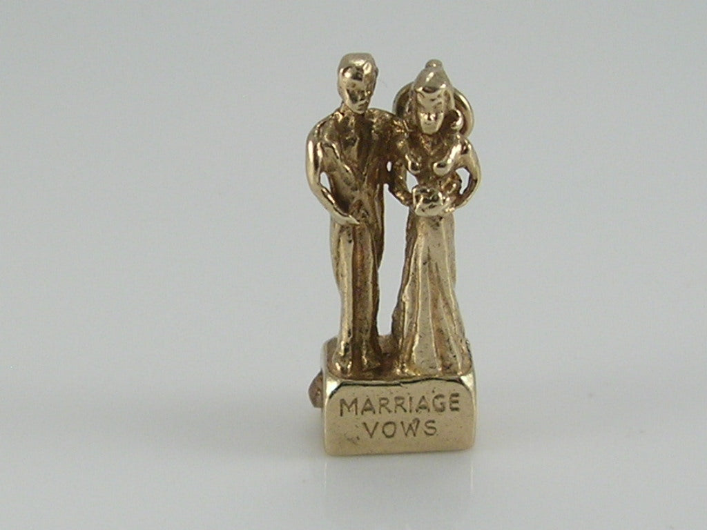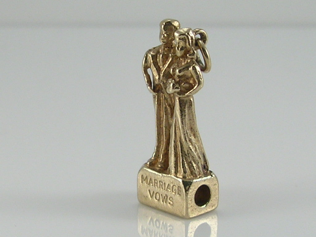 Vintage 3D 9ct Gold Stanhope Wedding Marriage Vows & Text Vows Charm H/MK 1966
