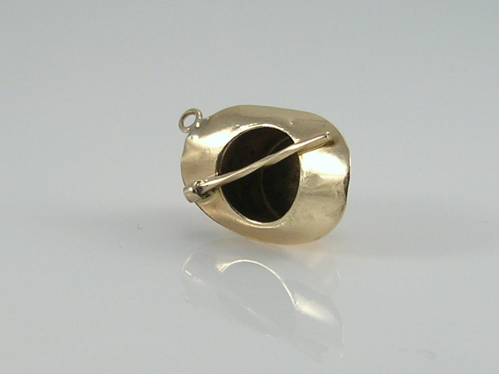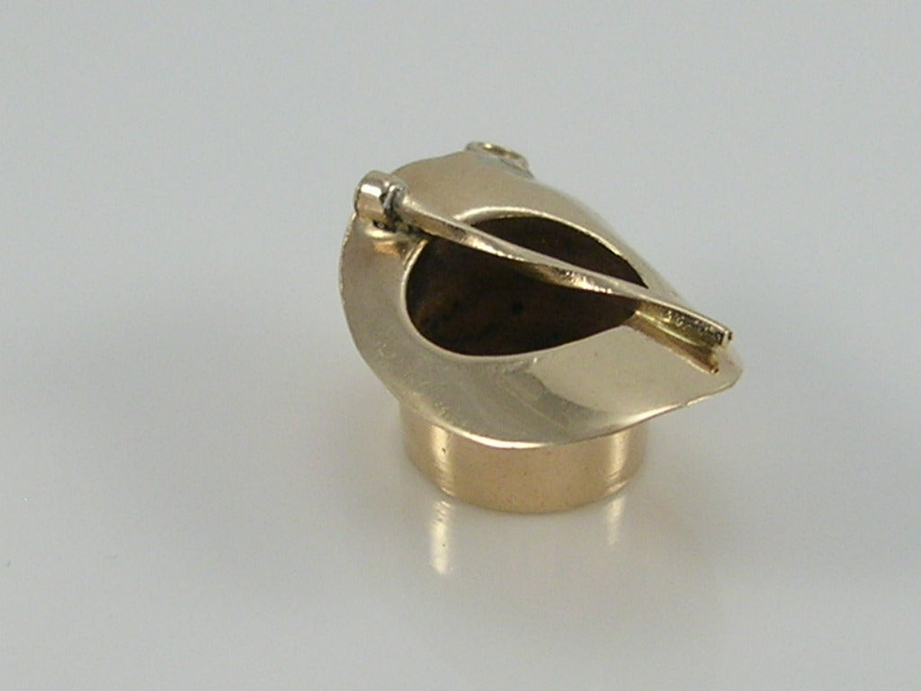 Measures approximately 14mm height by 19mm length excluding little fixed ring (9/16th's of an inch by 3/4 of an inch)