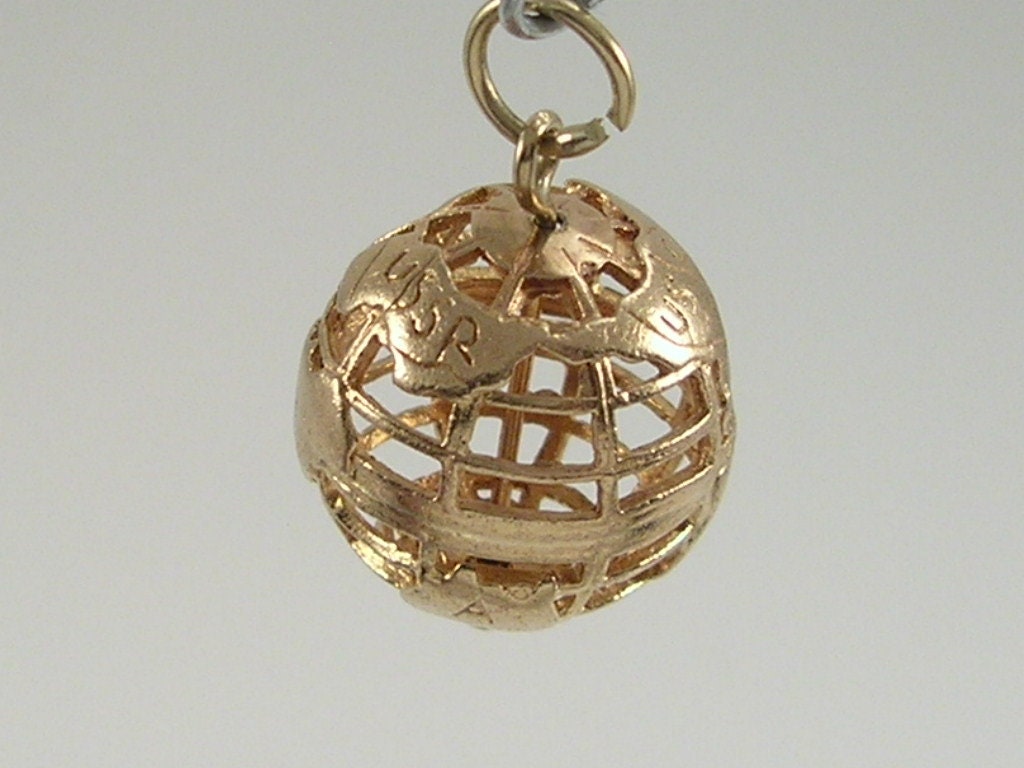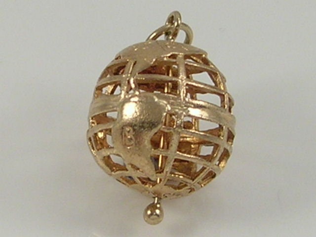 Vintage 3D 9ct Gold World Globe Map Travel Charm Pendant. H/MK