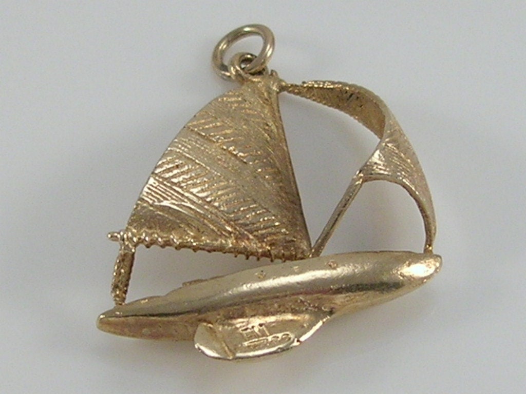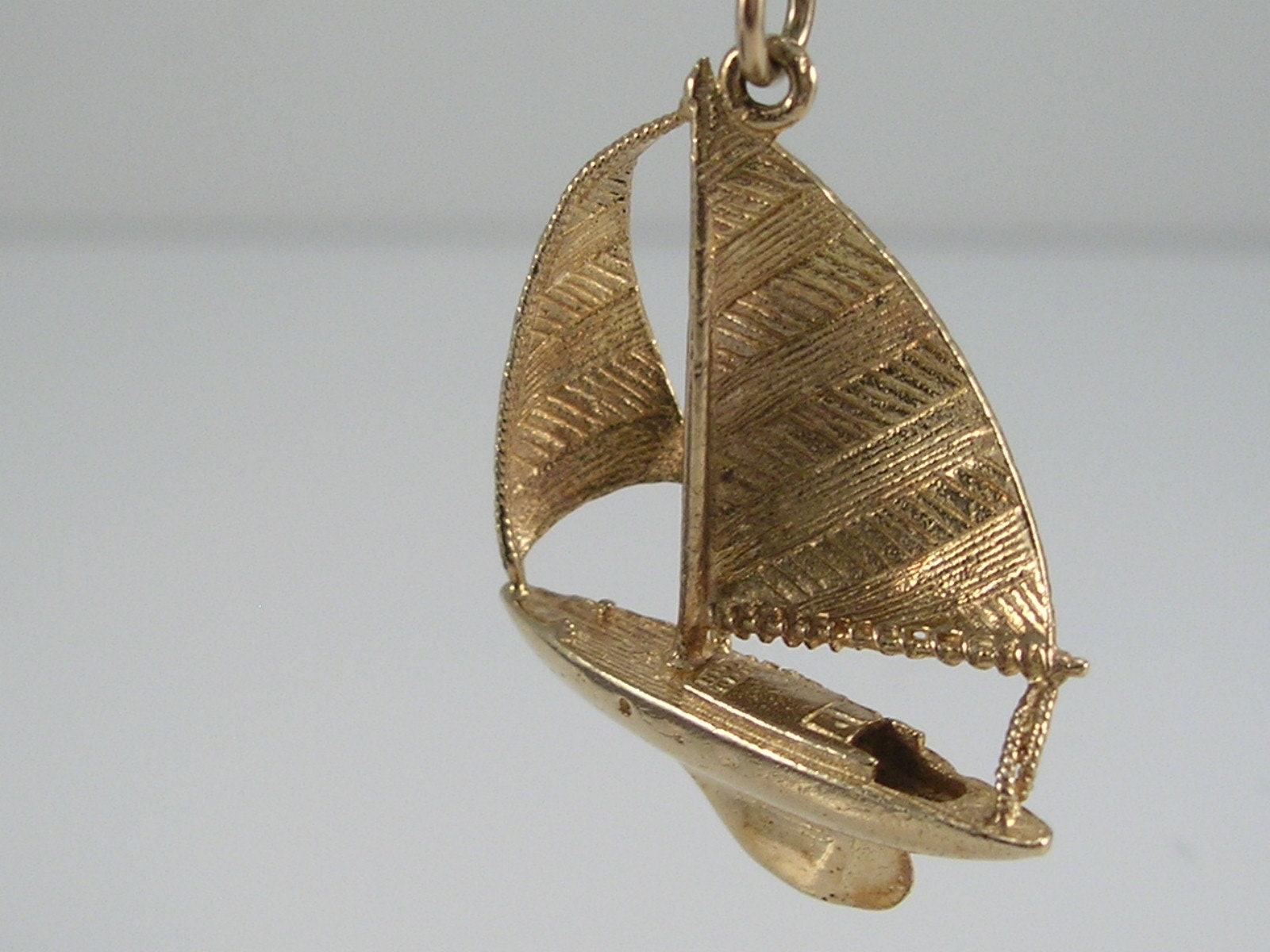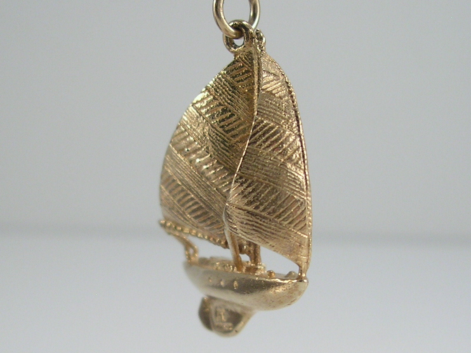 Vintage 3D 9ct gold yacht sailing ship boat charm pendant