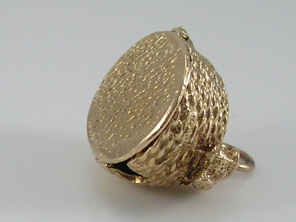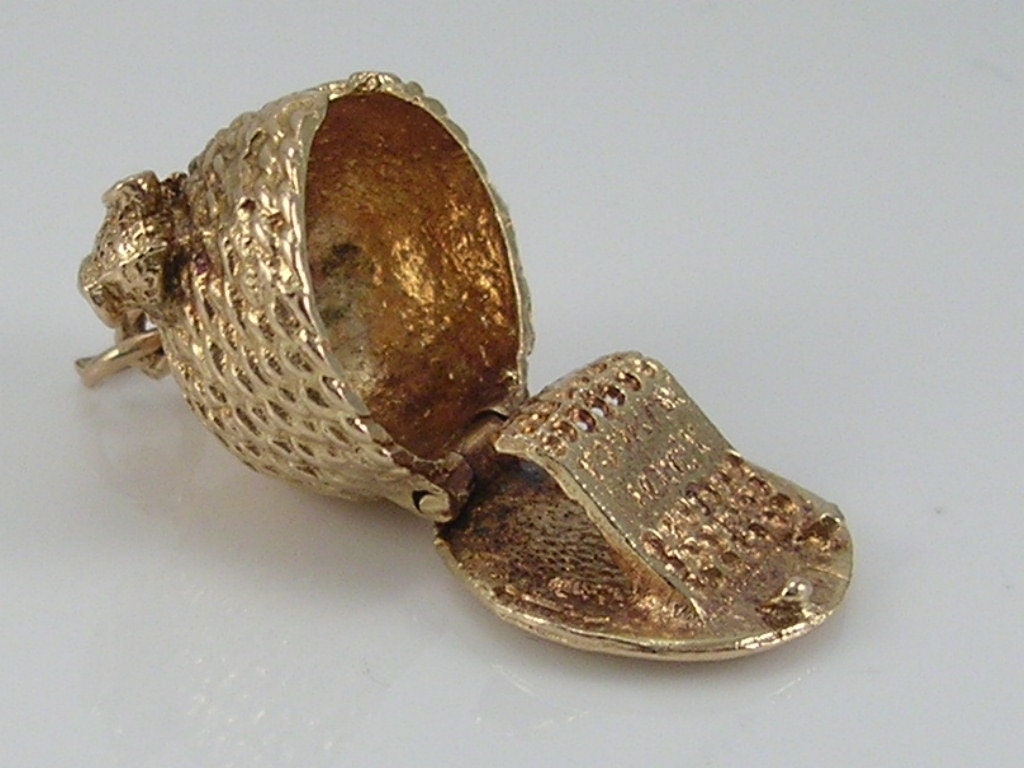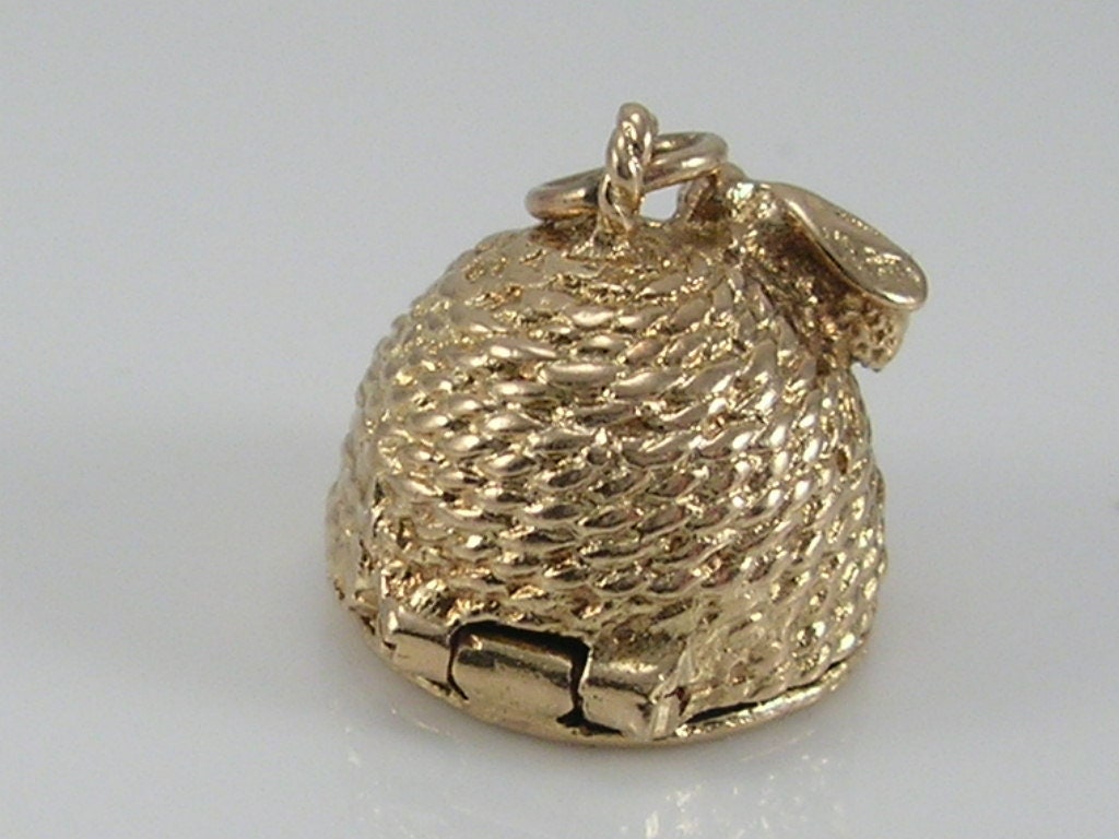Vintage 3D 9ct gold bee hive charm...opens to honeycomb with words YOUR MY HONEY