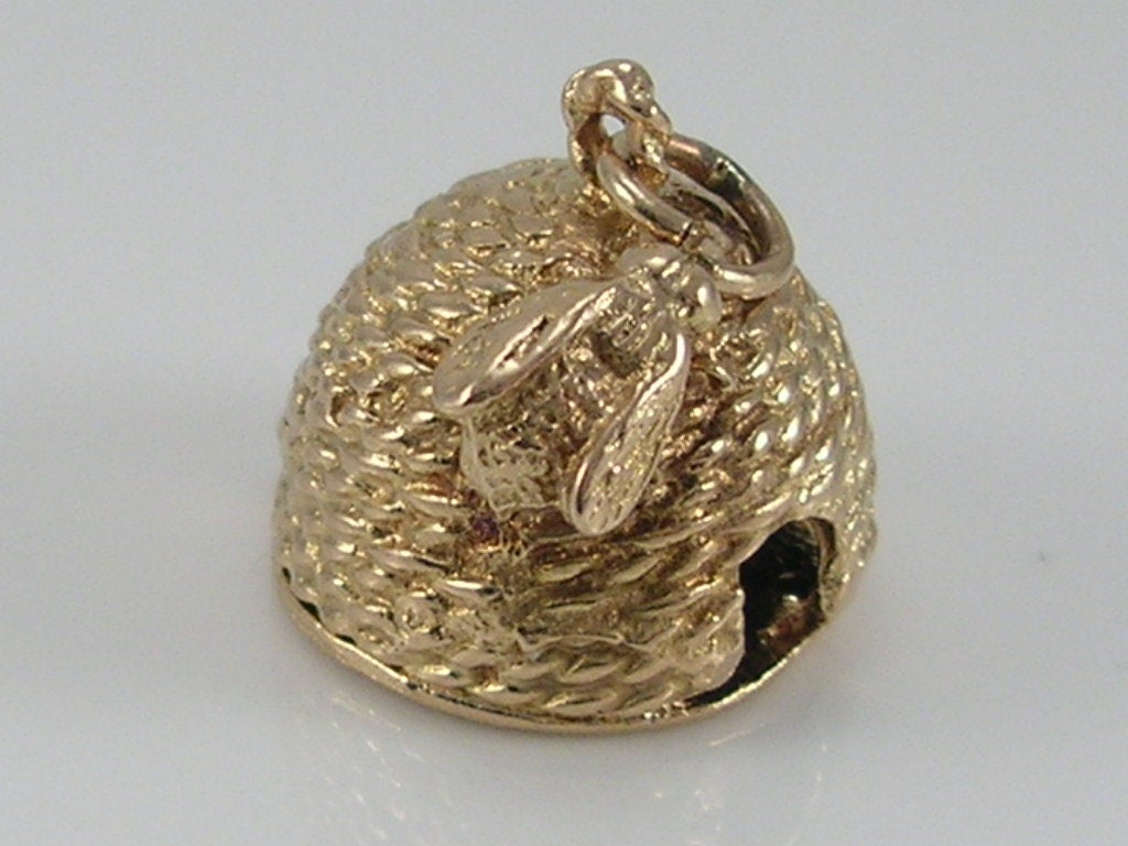 Vintage 3D 9ct Gold Your My Honey Bee Hive Your My Honey Charm H/MK 1958