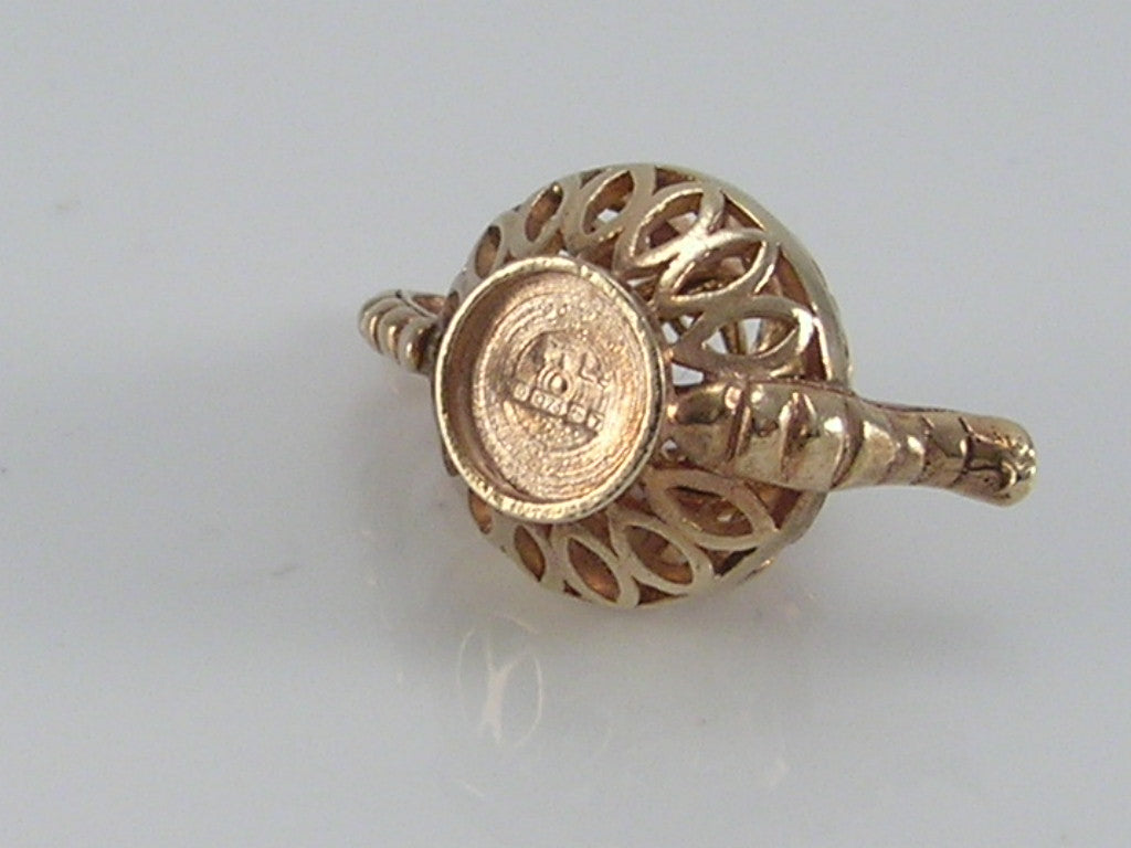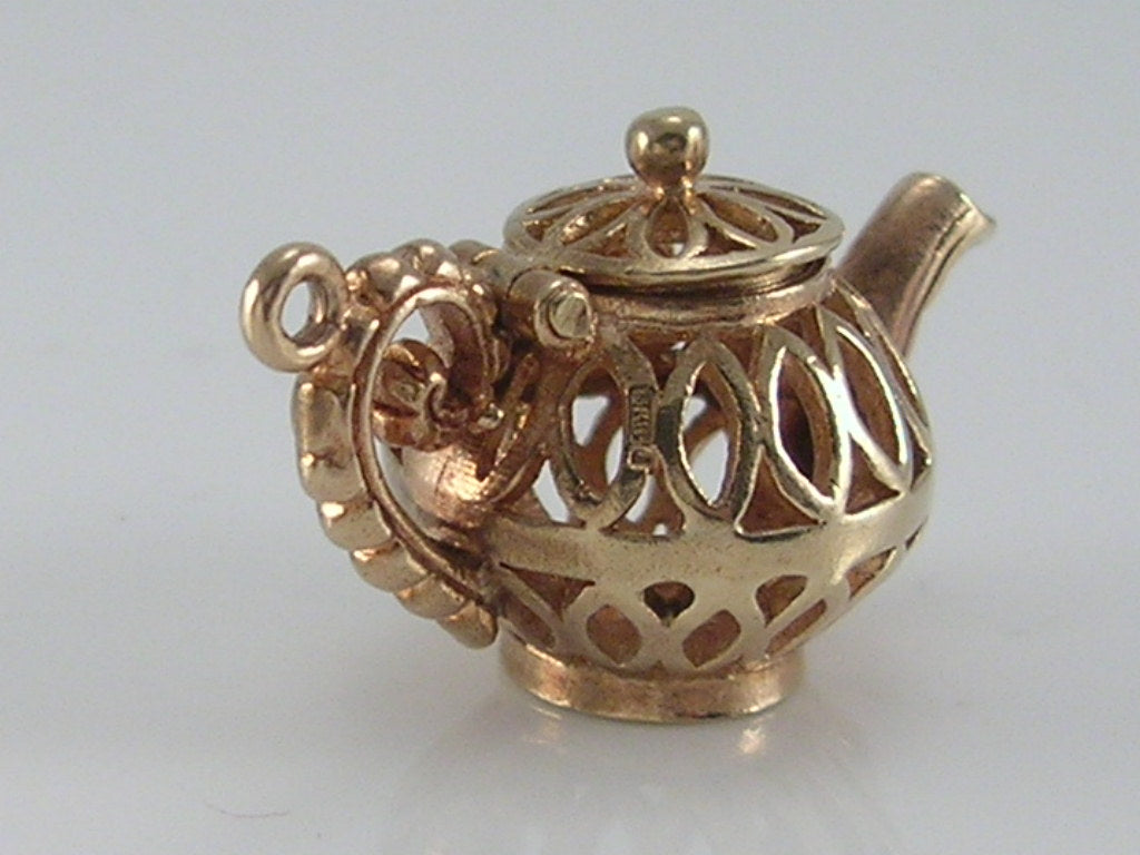 Vintage 3D 9ct Ornate Openwork Gold Teapot Charm...Opens H/MK 1971