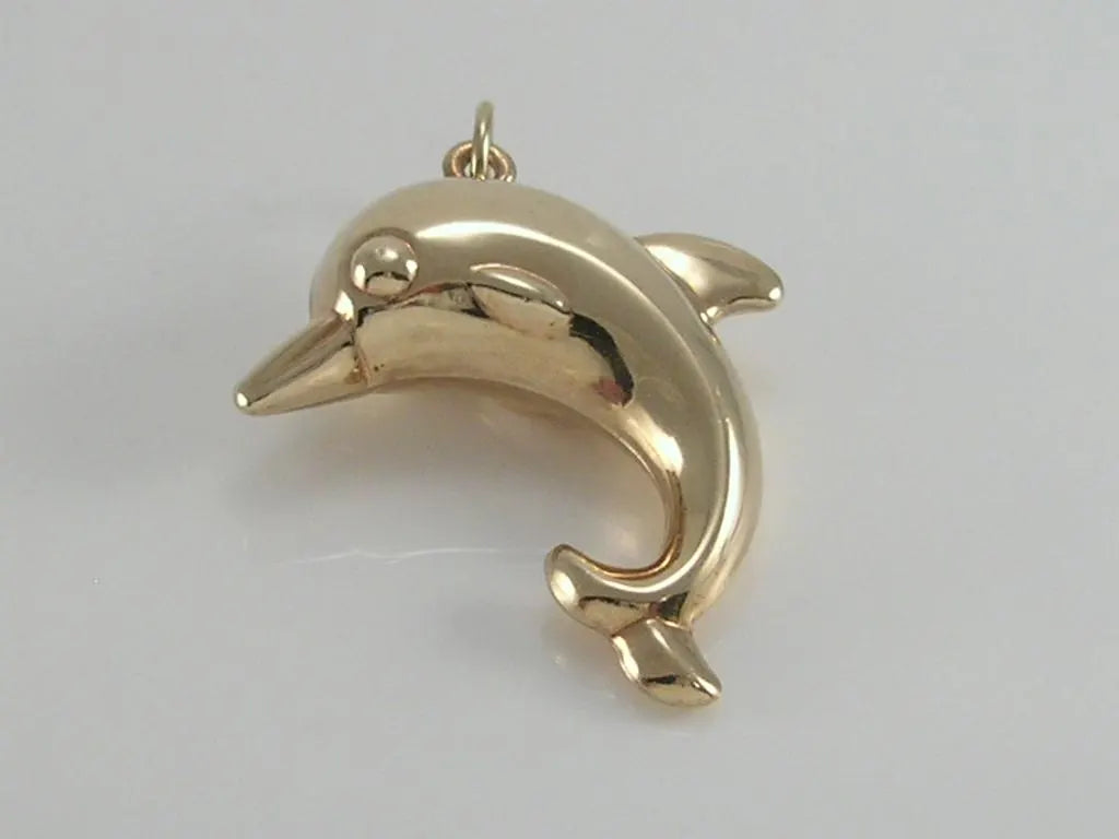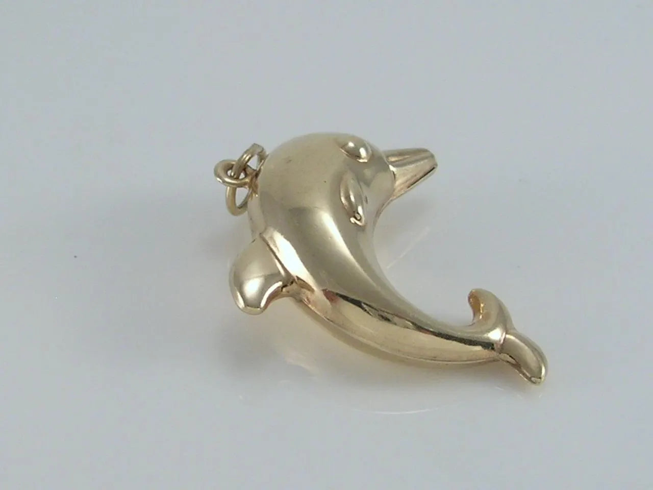 Vintage 3D Large Size 9ct Gold Dolphin Pendant