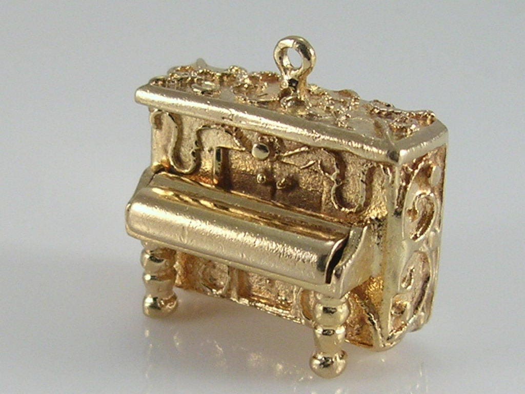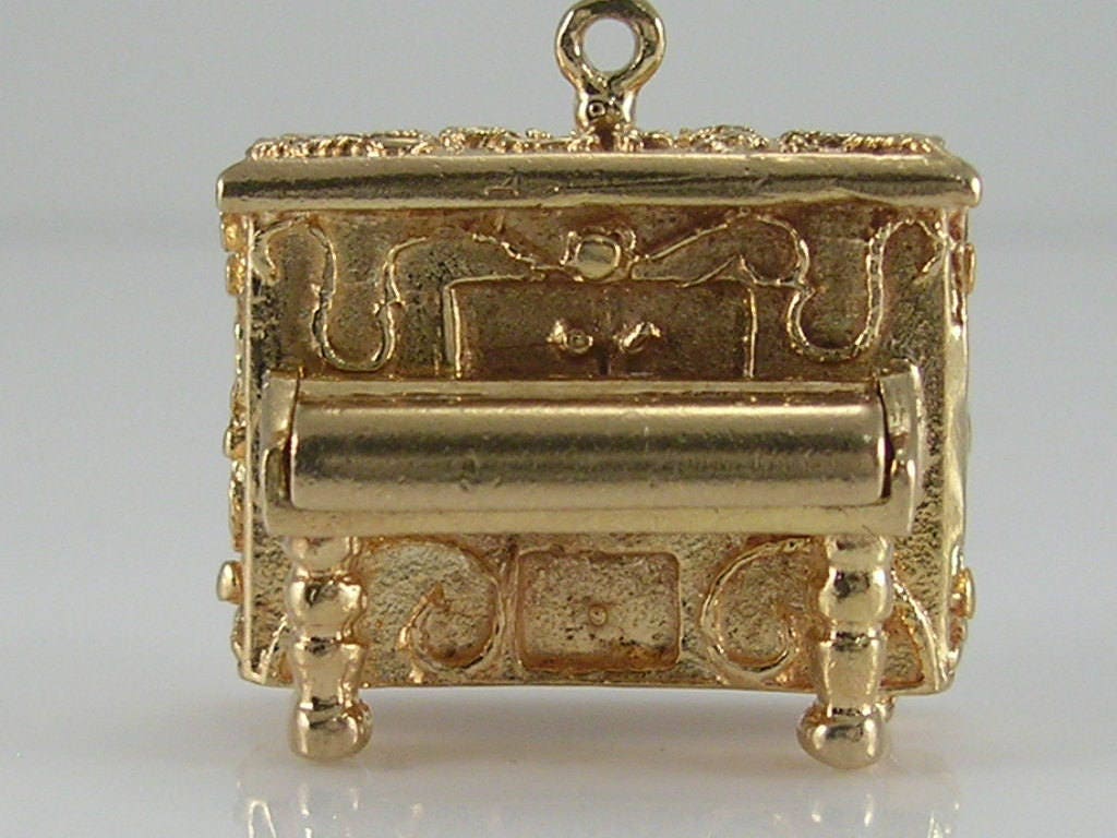 Vintage larger size 3D 9ct gold upright piano charm...movable lid opens and closes