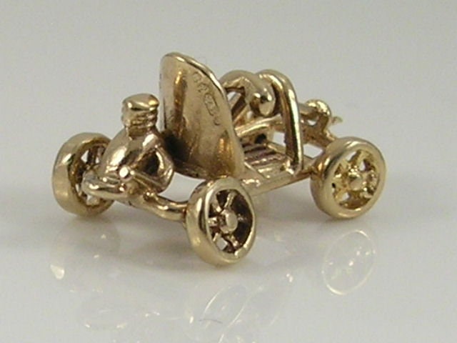 Vintage 3D 9ct gold Movable go cart buggy charm