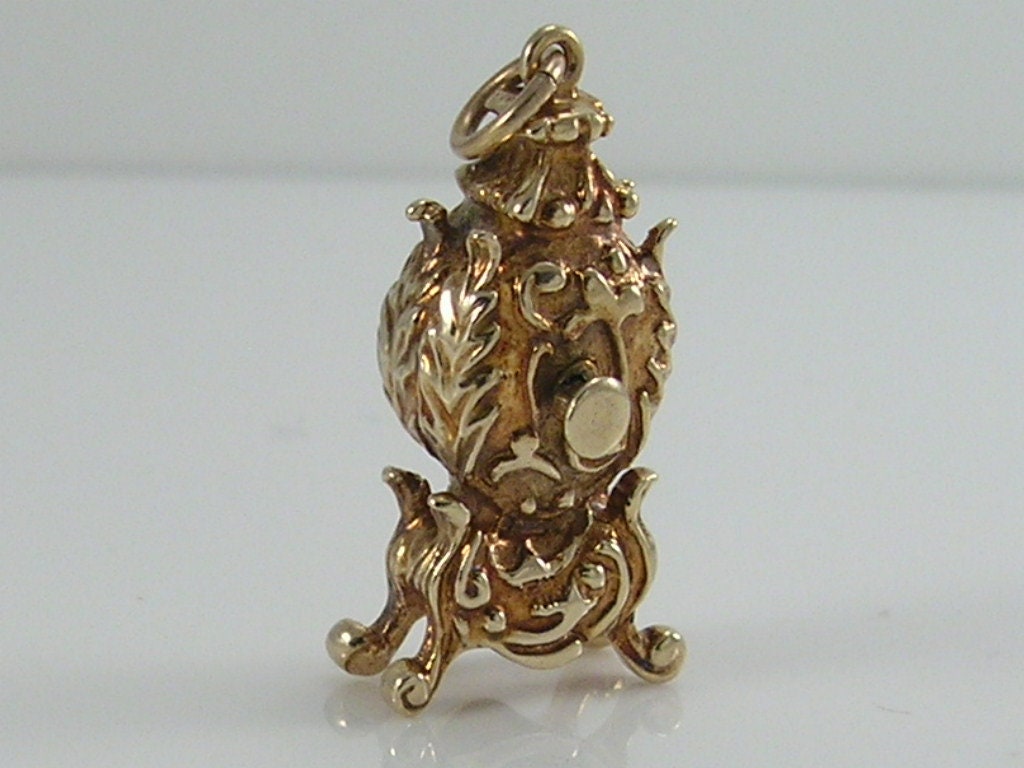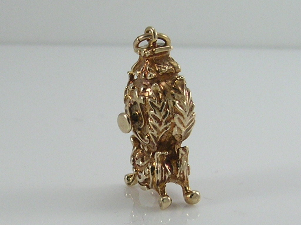 Vintage 3D Ornate Design 9ct Gold Mantle Clock Charm. Movable H/MK 1966