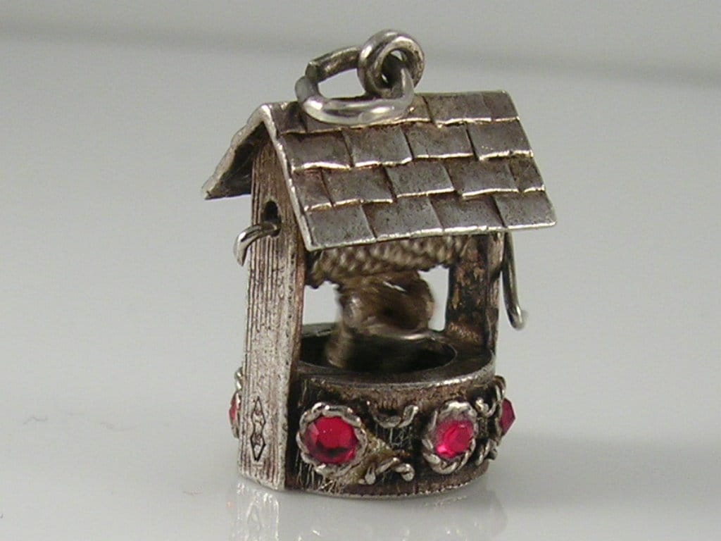 Vintage 3D Sterling Silver & Crystals Wishing Well Charm. Movable
