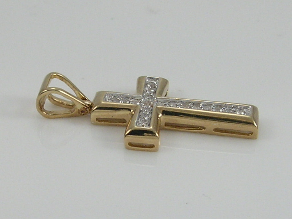 Vintage 9ct gold 0.15 ct diamond Cross pendant