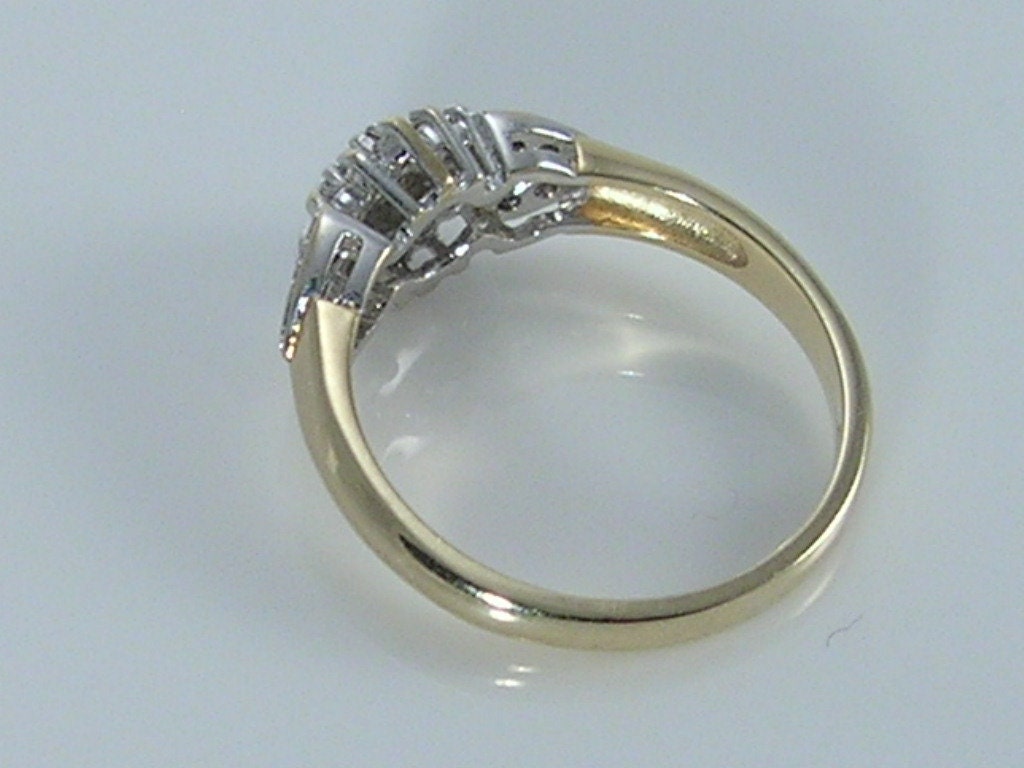Diamonds set in white gold, diamond set white gold shoulders and yellow gold ring shank